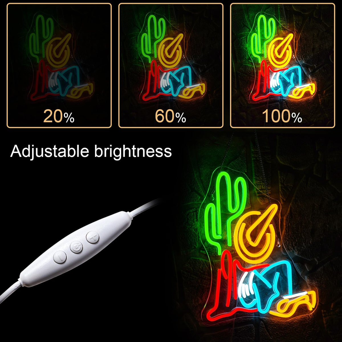 Cowboy Cactus Neon Sign Cowboy Hat Neon Signs for Wall Decor Western Wall Art USB Light Up Sign Dimmable LED Sign For Man Cave,Bar,Party,Bedroom,Home Wall,Gifts for Teens Kids Women Men