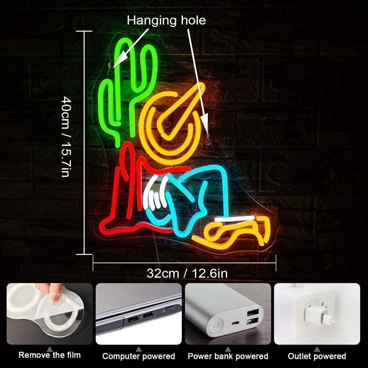 Cowboy Cactus Neon Sign Cowboy Hat Neon Signs for Wall Decor Western Wall Art USB Light Up Sign Dimmable LED Sign For Man Cave,B