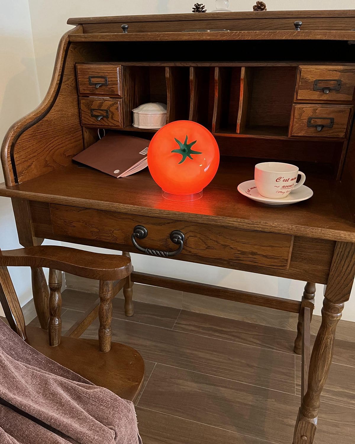 Q: What type of decor does the Cozifycasa Tomato Table Lamp complement?A: This vintage and kitschy lamp complements a variety of decor styles, including cottagecore, funky, retro, and food-themed designs. It adds a playful touch to any space.