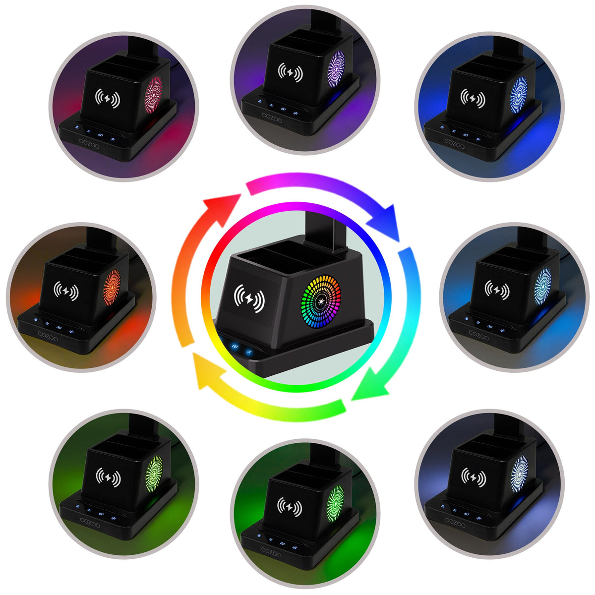 Cozoo Led Desk Lamp With Wireless Charger, Pen Holder, Color Changing Nightlight, 12 Modes, Black