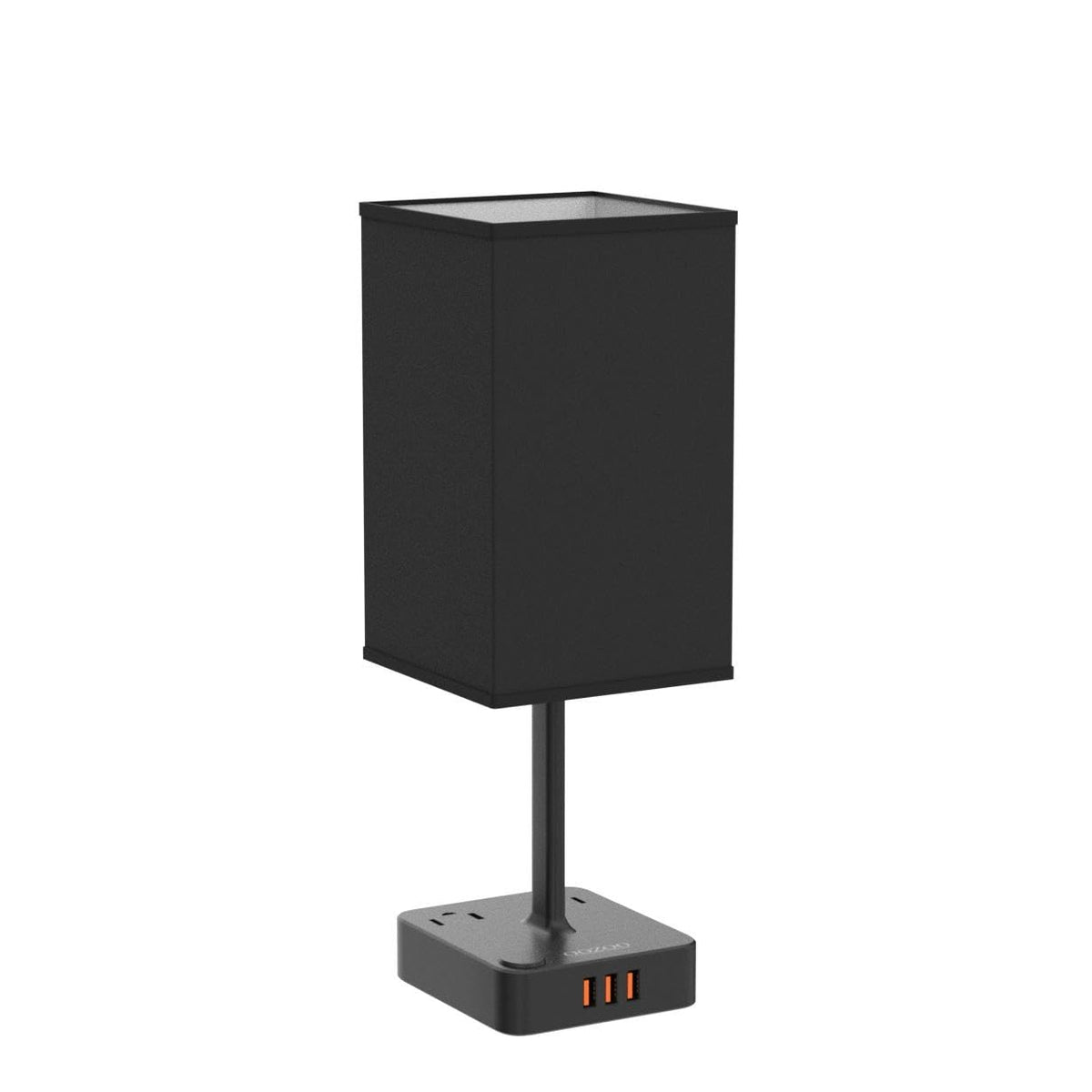 Cozoo Usb Bedside Table Desk Lamp With 3 Usb Charging Ports And 2 Outlets Power Strip,Black Charger Base With White Fabric Shade, Led Light For Bedroom/Nightstand/Living Room (Black)