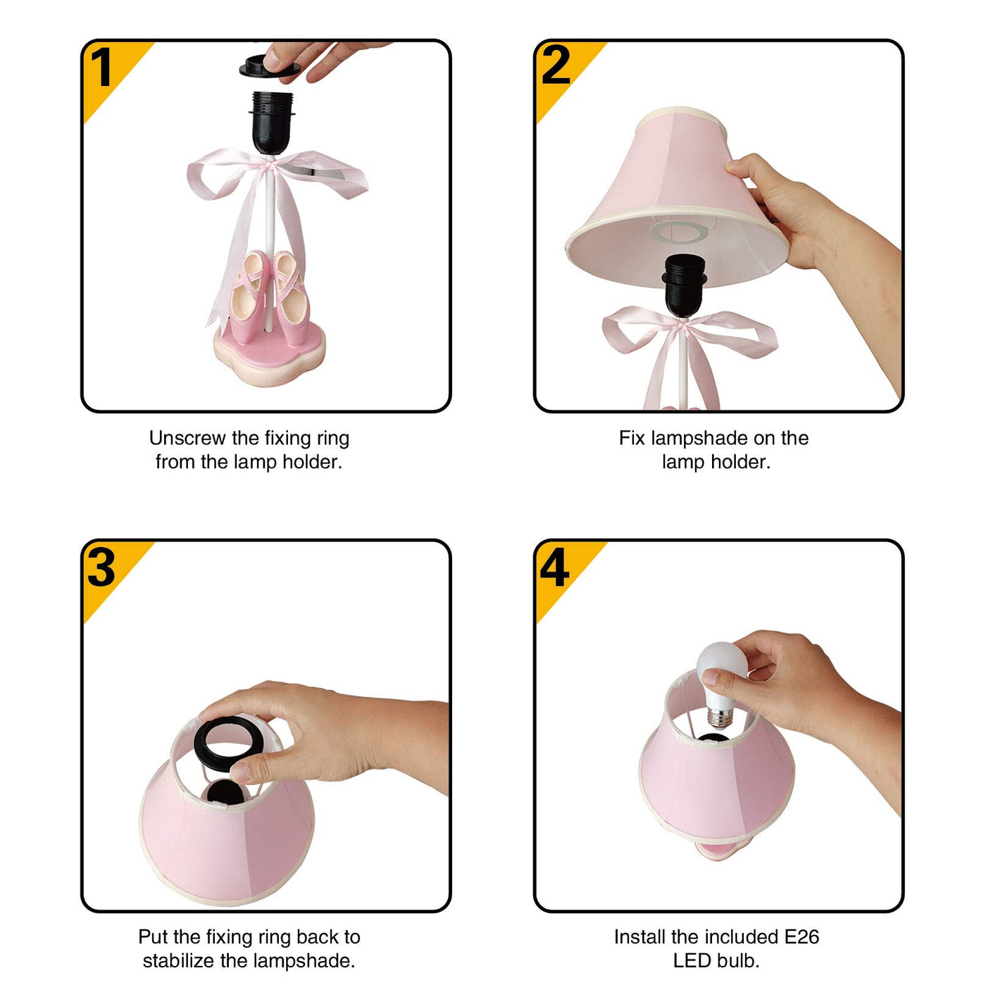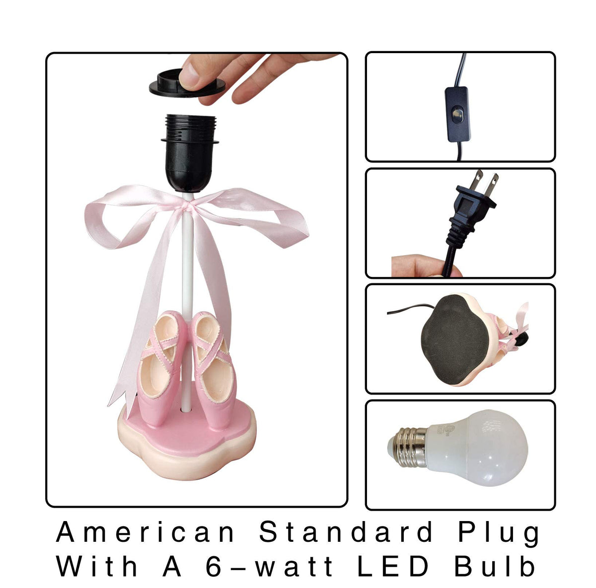Our Story:&Nbsp; We Are An Entrepreneurial Garage Company. Although We Have A Limited Number Of People, We Always Ensure That There Are Two Quality Inspectors To Carry Out Strict Quality Control And Provide Our Customers With A Pleasant Shopping Experience. Detail:&Nbsp; Type: Children'S Table Lamp Light Body Material: Resin Shade Material: Fabric + Pvc Light Source Type: Led Whether The Luminaire Has A Light Source: With An E26 Led Bulb Voltage: 111V~240V (Inclusive). Power: 21W (Inclusive) -30W (Inclusive) Applicable Space: Living Room Study Room Bedroom Other Color &Amp; Size:&Nbsp; 8.7 In (Length) X 8.7 In (Width) X 13.8 In (Tall) Pink Ballet Dancing Shoes Table Lamp &Nbsp; &Nbsp;&Nbsp;