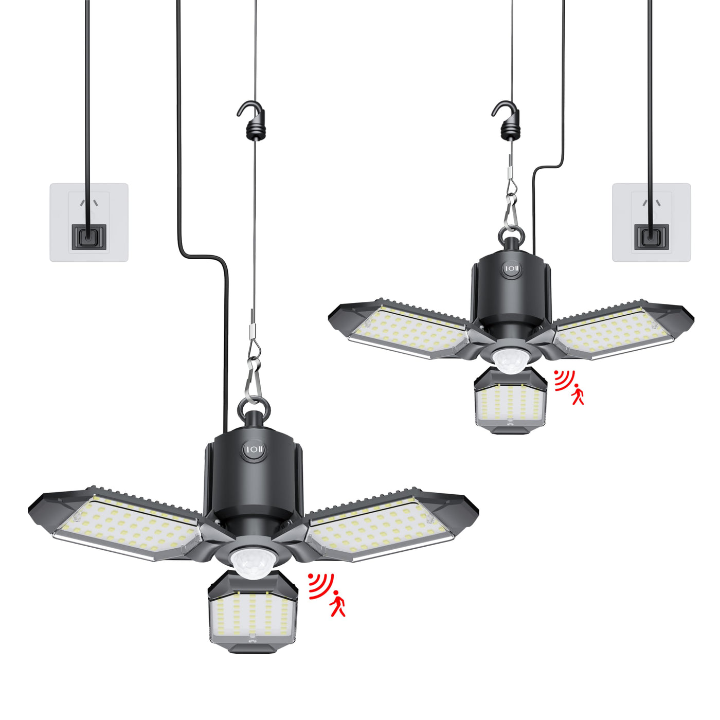 Craftersmark Led Garage Light Plug In Motion Sensor, 80W Motion Sensor Light Indoor, Garage Light With Motion Sensor, Dusk To Da