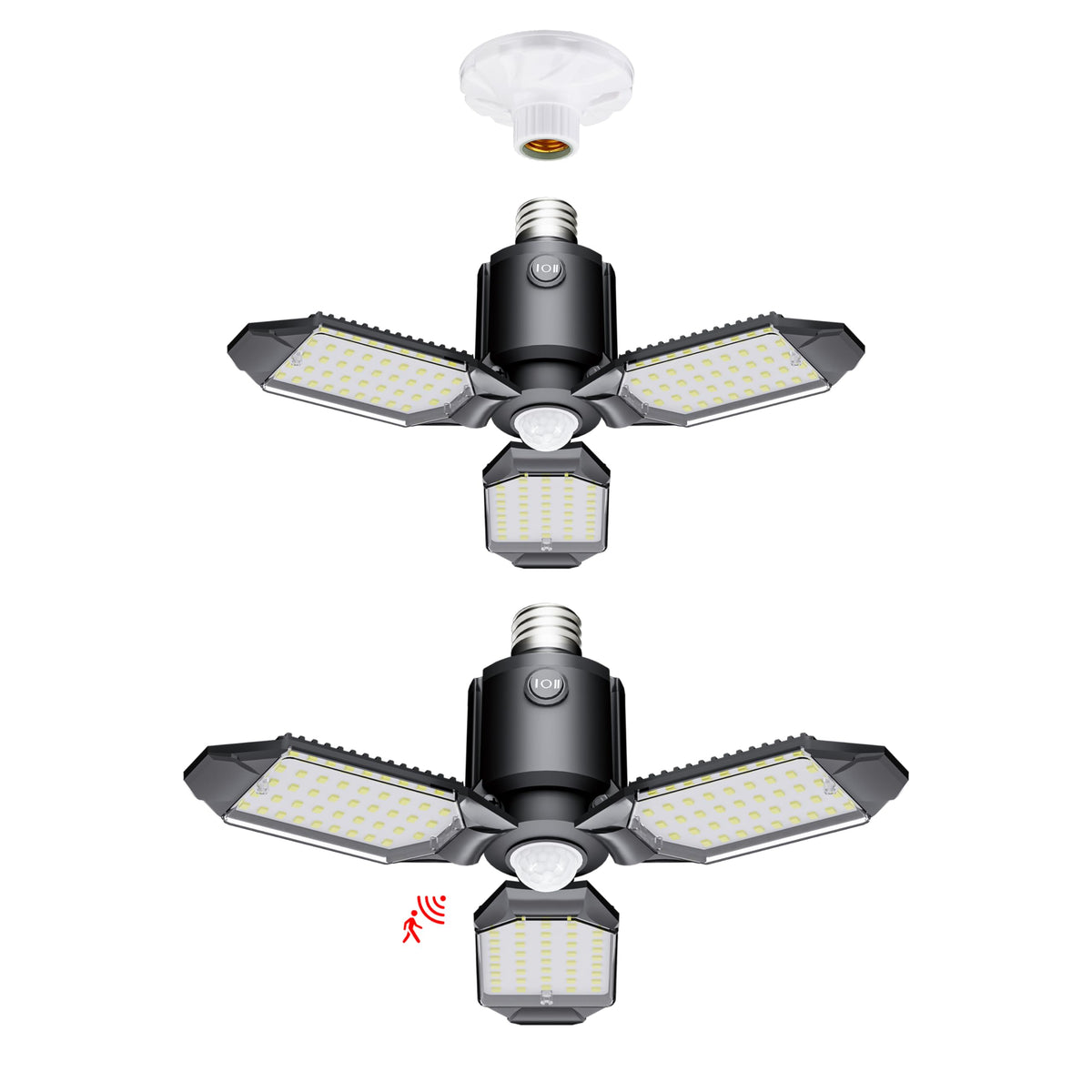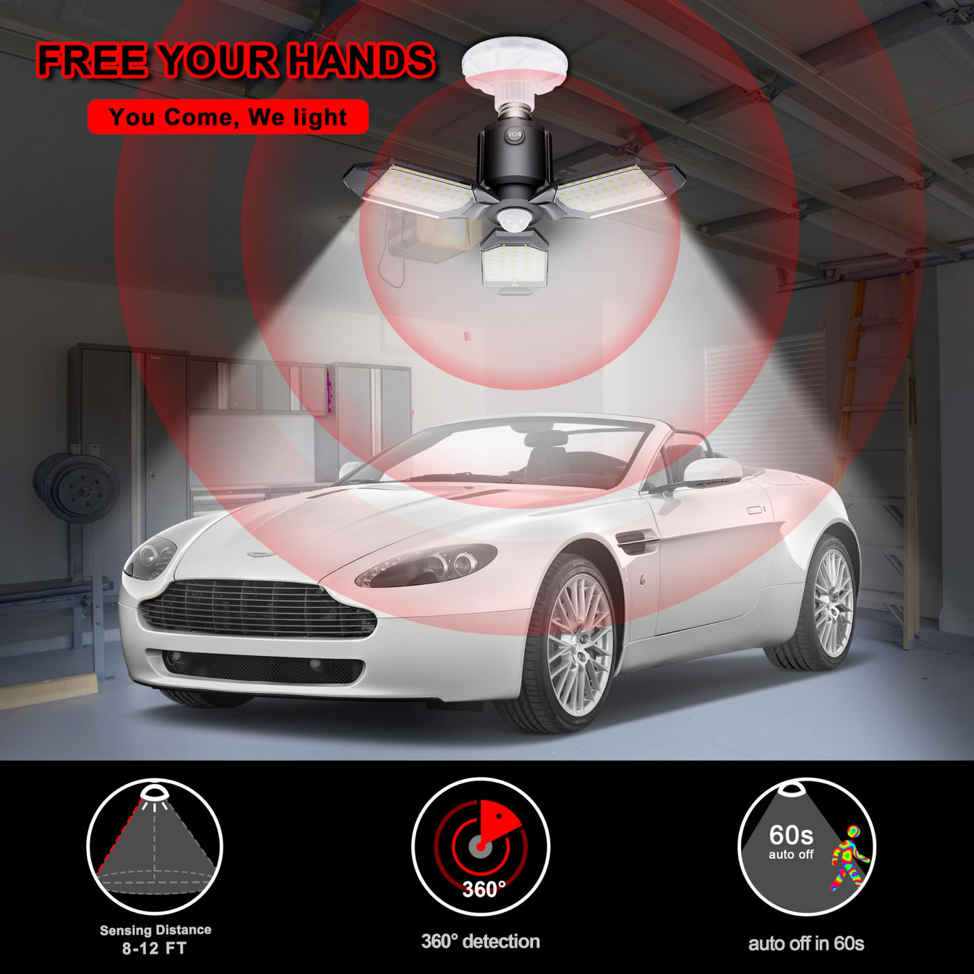Craftersmark Motion Sensor Gargae Lights Dusk To Dawn Sensor : Only Detect At Night Sensor Distance: 12-15Ft Detect Angle : 360 Auto Off : 60S Brightness : 80W/8000Lm Screw-In Installation