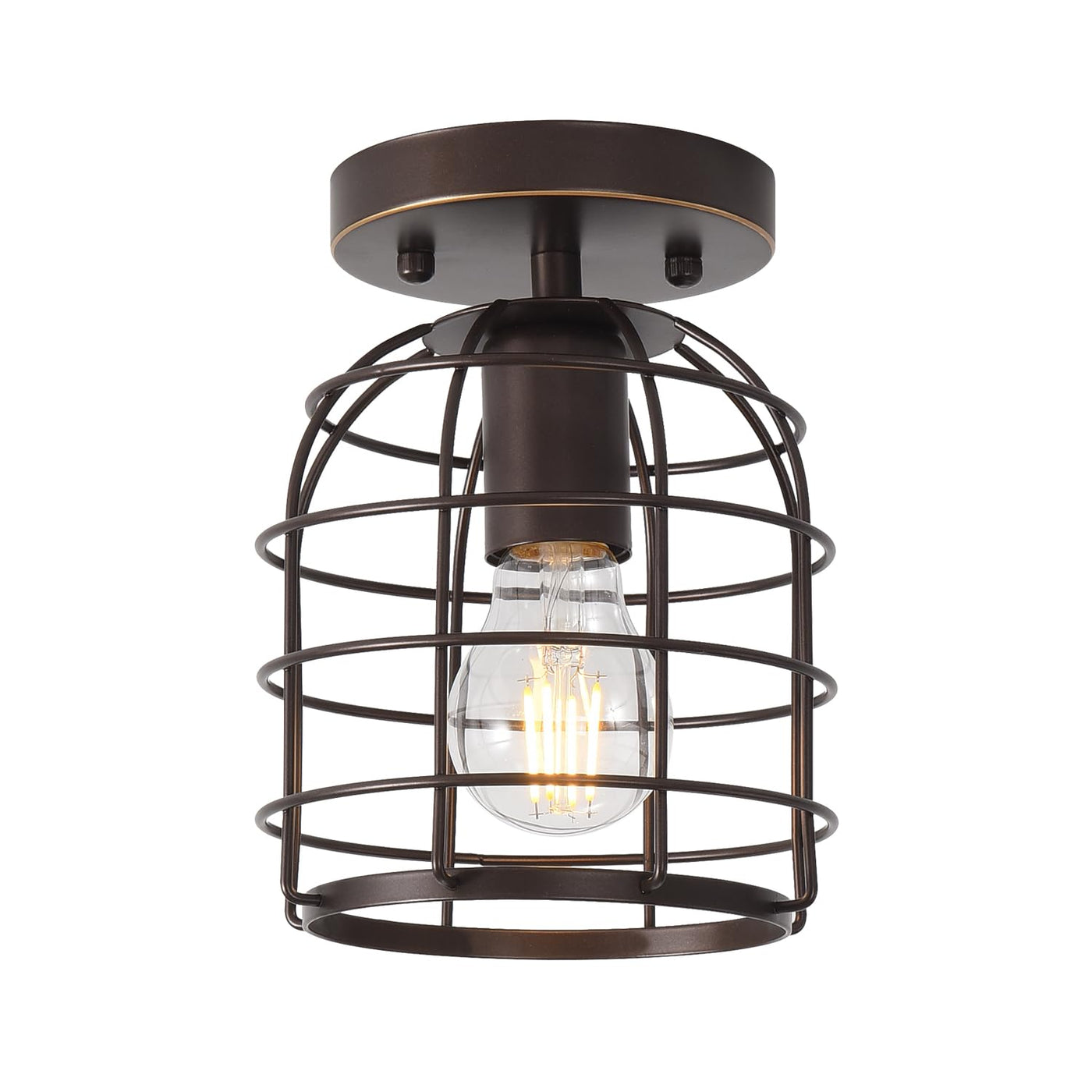 This ceiling light features a classic industrial design, crafted from well-made metal with an oil-rubbed bronze finish. Measuring 6.3 inches in diameter and 7.8 inches in height, it fits seamlessly into any room without overwhelming the decor. The canopy diameter is 4.72 inches, ensuring a secure and stable installation. With a hard-wired setup and included user manual, installation is straightforward. The fixture is UL listed for safety, providing peace of mind in its use.