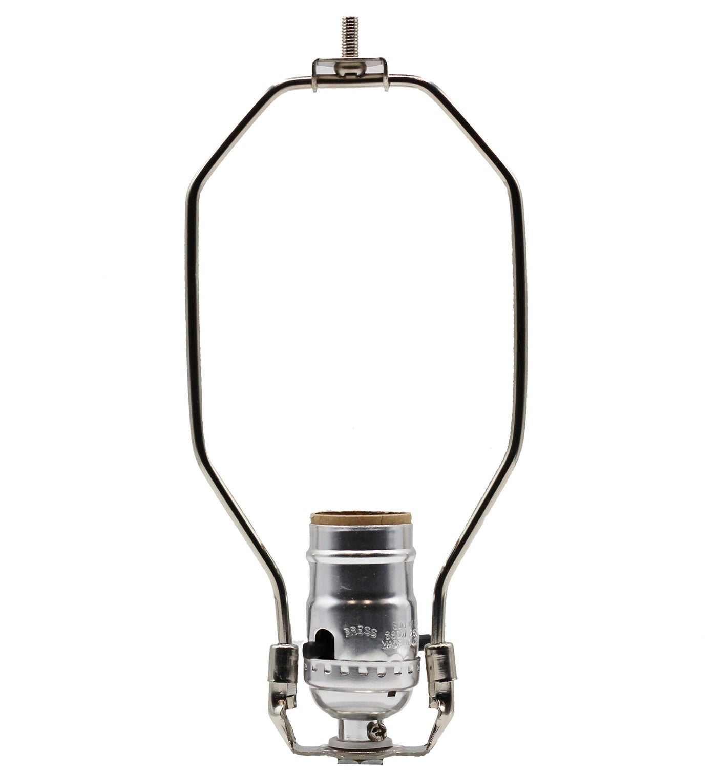 This unique and charming silver finish Lamp Parts Kit allows you to easily create electric accent lamps or DIY re-wire an old lamp. All necessary hardware parts and instructions are included, enabling you to craft a clever lamp in minutes. Featuring an 8-foot Silver SPT-1 Lamp Cord with a factory assembled plug, this kit is designed for convenience and ease of use. The Push Thru style socket includes a socket cap with a side hole, eliminating the need to run the lamp cord through your lamp base if you prefer not to.