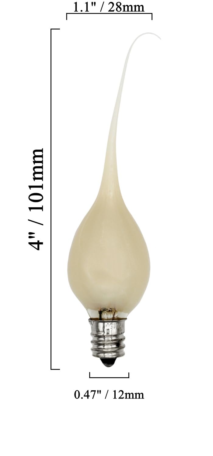 Once You Use These Light Bulbs You Will Never Go Back To Plain Old Boring Clear Light Bulbs Again. These Bulbs Have A Dramatic Country Look And Add Down-Home Charm To Electric Candle Creations, Accent Lamps Or Country Style Lighting Applications. Steady-Burning 5 Watt Bulbs Are Hand Dipped In A Pearlized Gold Silicone Coating That Produces A Flexible, Tapering, Flame-Like Appearance. Light Travels Throughout The Coating To The Very Tip And Imparts A Charming Appearance To The Bulb. The Best Part Is The Bulbs Look Attractive When Unlit! The Bulbs Have A Candelabra Base And Are For Indoor Use Only. You Get A Total Of 6 Bulbs In This Offer.