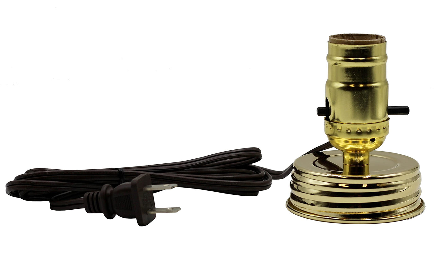 Easily Convert Your Mason Ball Jars To Unique Conversation Pieces With Our Easy To Use Diy Lamp Light Kit! Standard Base E26 Size Gold Lamp Socket Is Already Wired With 6 Foot Brown Spt-1 Lamp Cord And Ready To Use - No Drilling Of Jar Required! The Lid Fits Standard Mouth Mason Ball Jars With Mouth Measuring 2-3/4'' Across. Lamp Components Are Ul Listed, Factory Assembled And Safe. E26 Size Lamp Socket Features A Push Thru On/Off Switch, Factory Assembled 2 Prong Plug And Takes Standard Size Household Light Bulb And Your Own Clip On Bulb Lamp Shade.