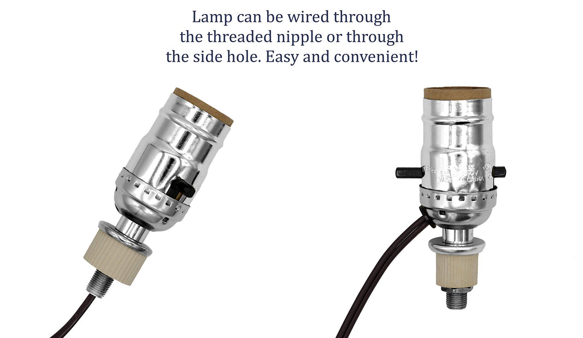 This unique and charming Bottle Lamp Kit allows you to easily convert your treasured wine, brandy, or decorative bottles into unique, convenient electric accent lamps. The kit comes with 3 different size rubber adapters to fit the finished socket assembly in to the bottle opening. Adapters are (1/2'', 3/4'' and 15/16'' diameter size), to fit different size wine bottle necks. All necessary hardware parts and instructions are also included. With this kit you can create a clever lamp in minutes. 8 Foot Silver SPT-1 Lamp Cord with factory assembled plug included. Push Thru style socket includes a socket cap with a side hole so glass bottle does not need to be drilled as lamp wire can enter from the side of the socket cap. Includes 8 inch harp. If desired the lamp can also be wired by passing the lamp wire up through the bottle and through the threaded nipple and into the socket for a more finished look. Cord set & fittings. UL Listed. 75 watt max household bulb recommended.