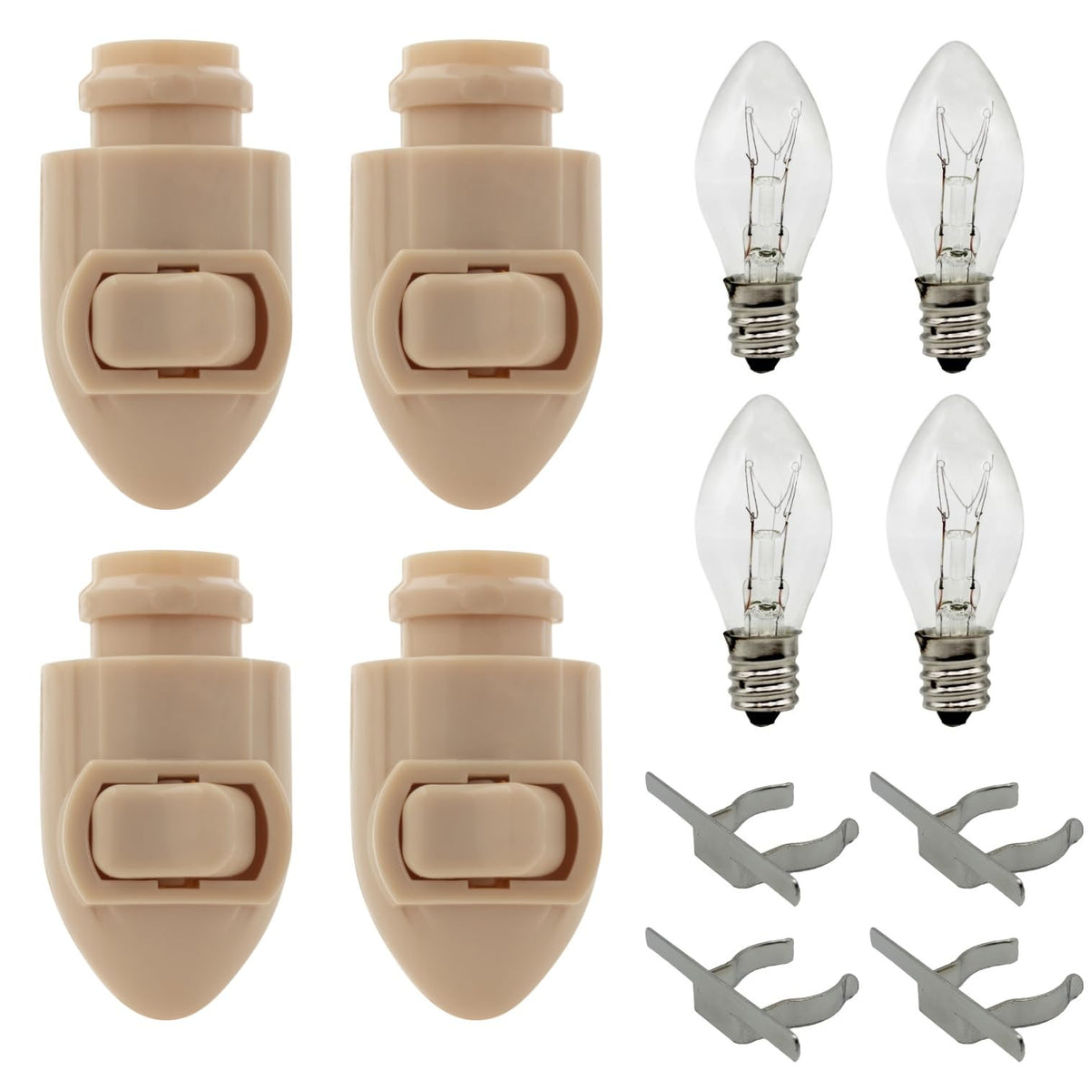 Creative Hobbies Wholesale Pack of 4 Ivory Night Light Sockets with Quality Rocker-type On/off Switch in Front and 4 watt night light bulbs and 4 metal clips! Creative Hobbies Wholesale Pack of 4 Ivory Night Light Sockets with Quality Rocker-type On/off Switch in Front and 4 watt night light bulbs. Great for using as they are or adding your own seashell or stained glass shape to the front for a custom look.120 volt AC plug in type, 7 watt max bulb.