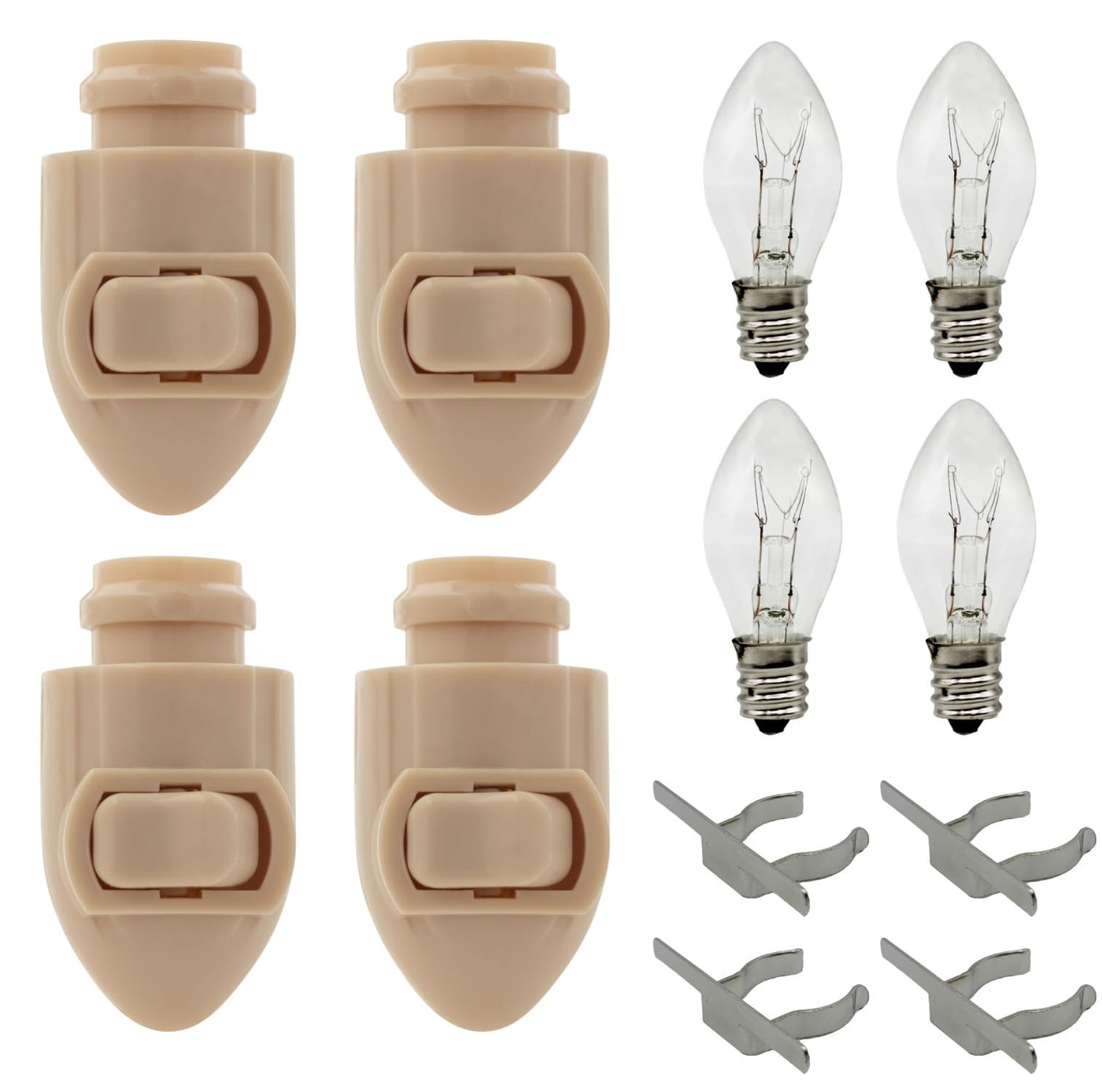 Creative Hobbies Plug In Night Light Module Includes 4 Bulbs And 4 Metal Clips, Great For Making Your Own Decorative Night Lights, Pack Of 4 (Ivory)