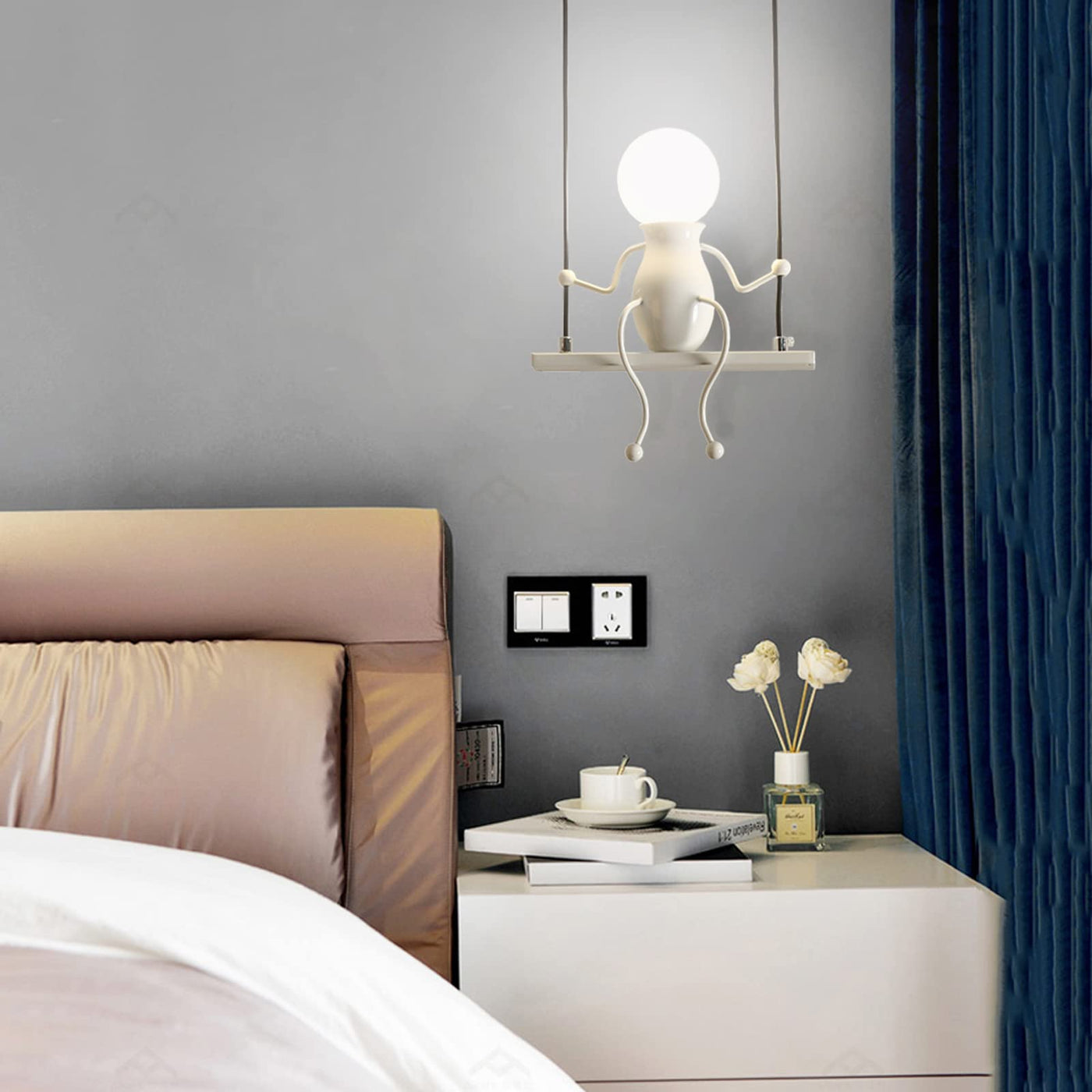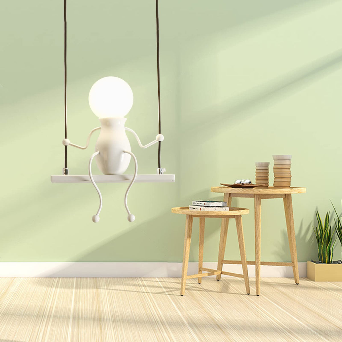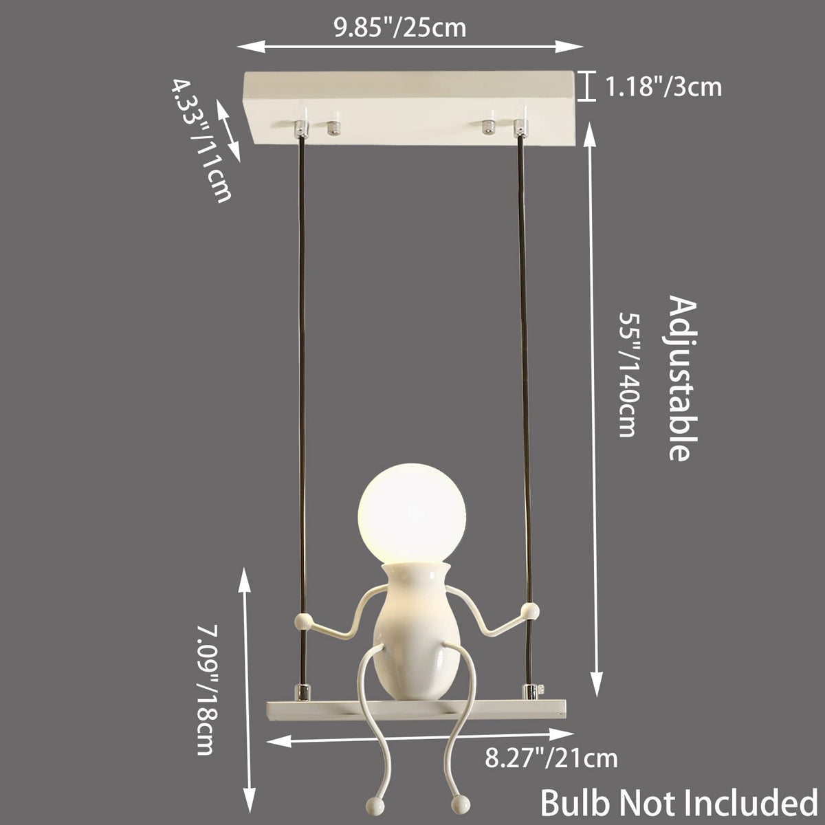 Creative Led Pendant Lighting Modern Little People Ceiling Pendant Light Fixture Adjustable Hanging Lights Kitchen Island Iron Cartoon Doll Chandeliers Bedrooms 1×E26 Baking Paint (White, One)