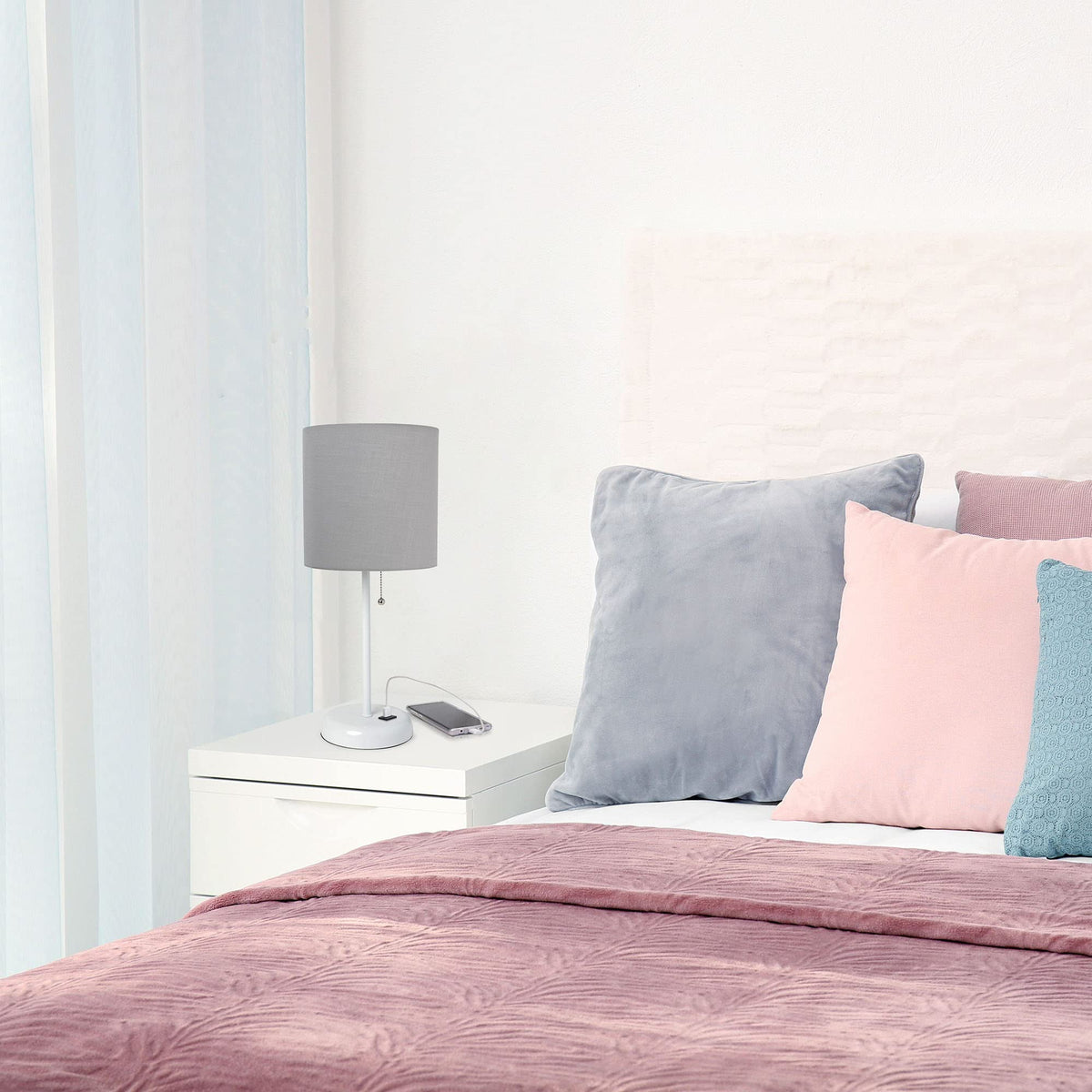Creekwood Home 19.5" Usb Table Lamp, White Metal With Gray Drum Shade, Contemporary Design