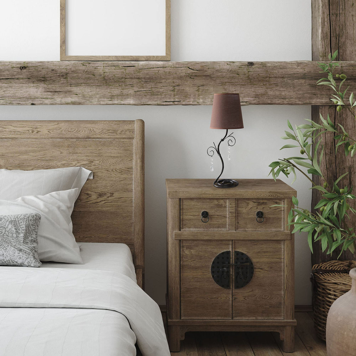 - **Elegant Design**: The lamp showcases a sophisticated brown tapered drum fabric shade that complements its winding black metal base. Crystals shimmer beneath the shade, providing a warm and inviting glow ideal for enhancing your decor.
