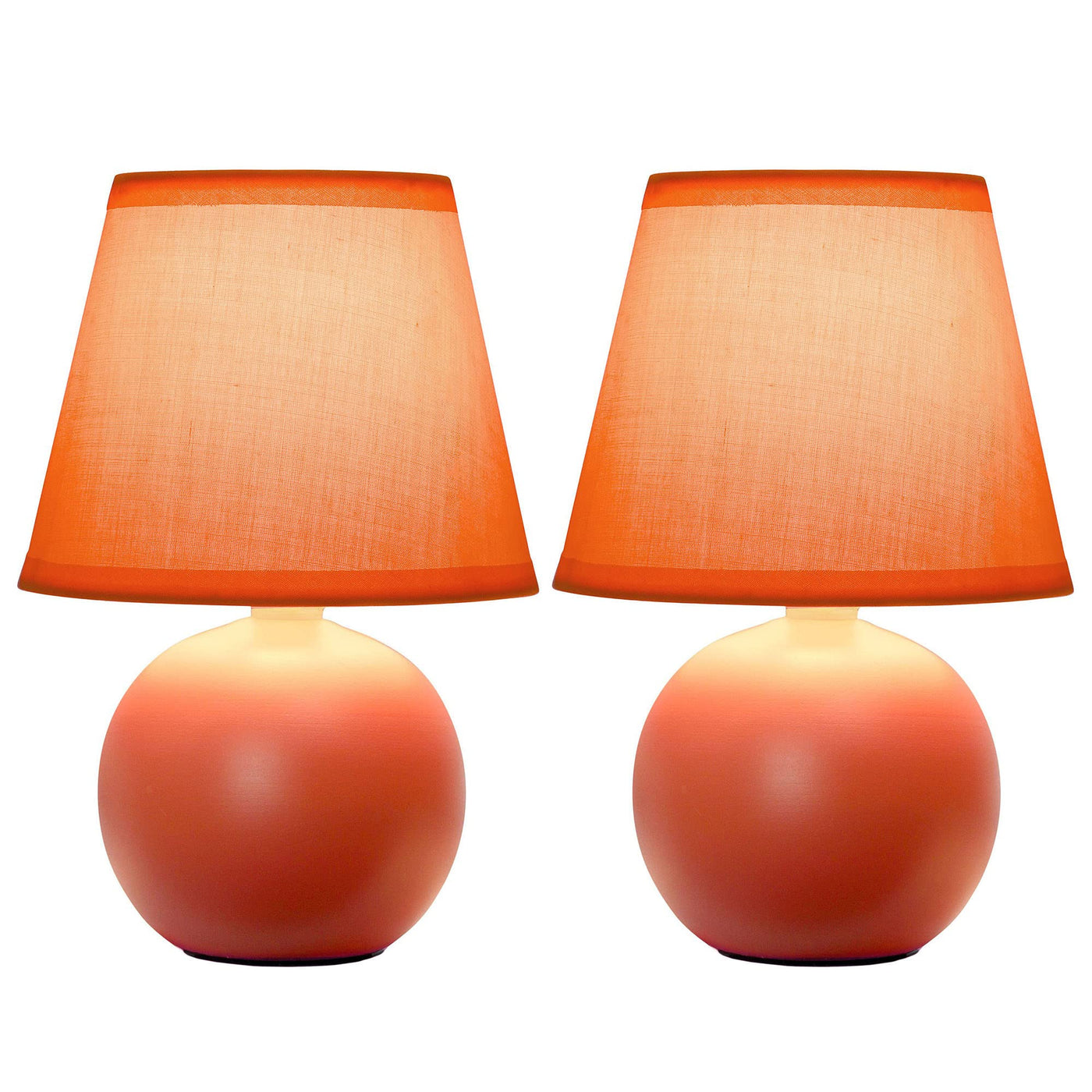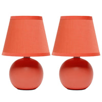 Creekwood Home 8.66" Orange Ceramic Orb Base Table Lamp Set With Drum Shade - 2 Pack