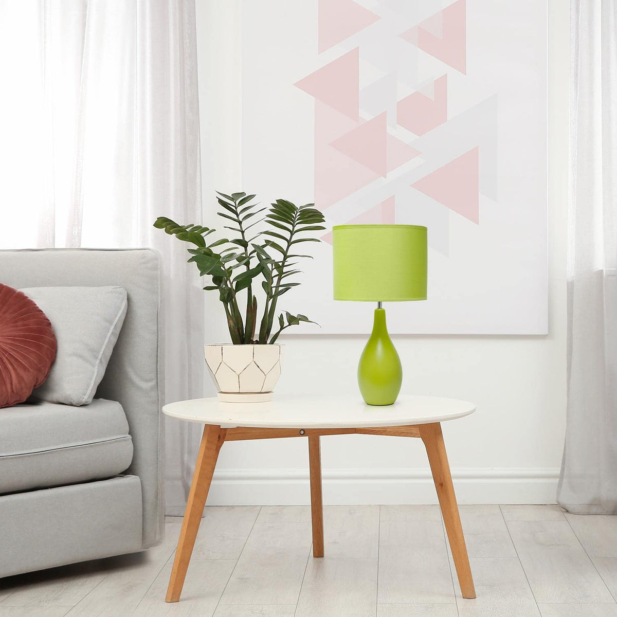 Creekwood Home Green Ceramic Dewdrop Table Desk Lamp With Fabric Shade, 18.11"