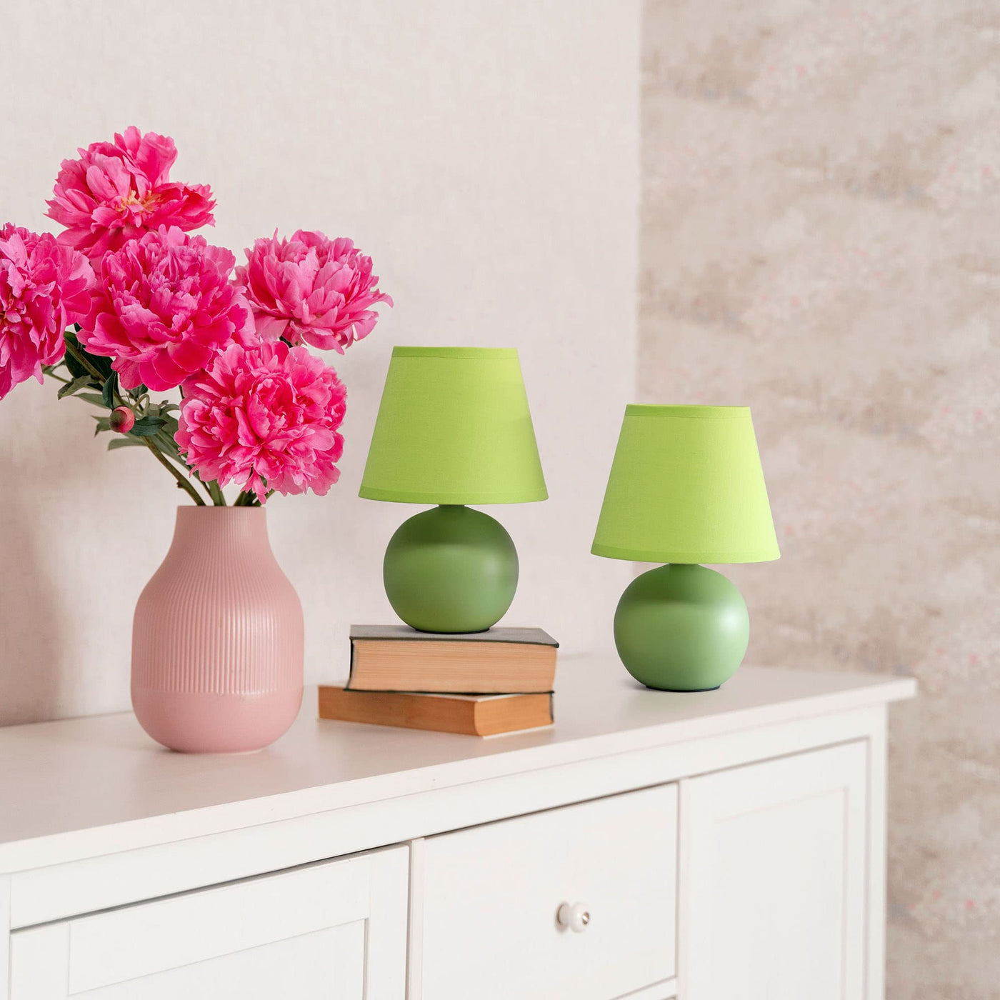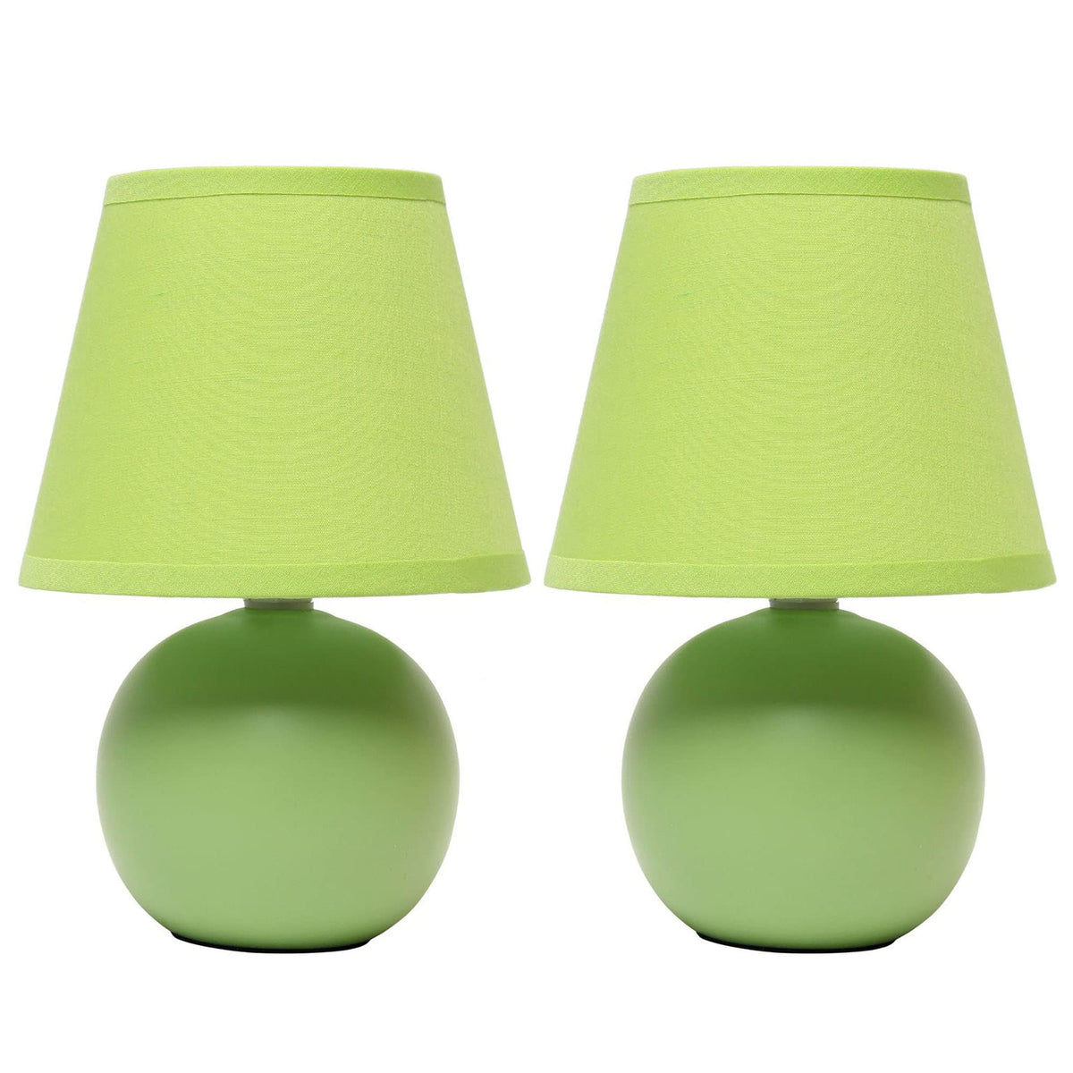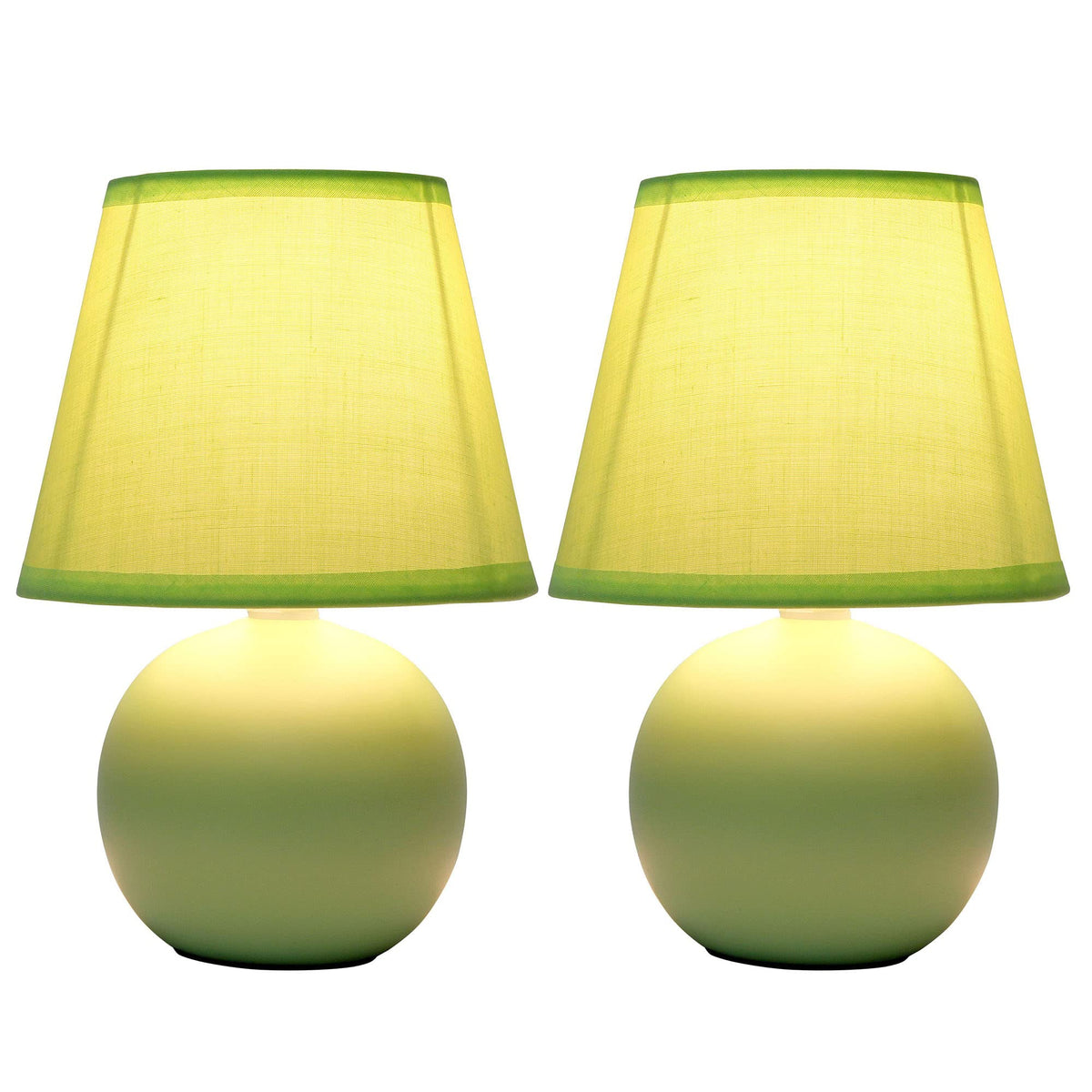 Creekwood Home Green Ceramic Orb Base Bedside Table Lamp Set - 8.66" With Drum Shade