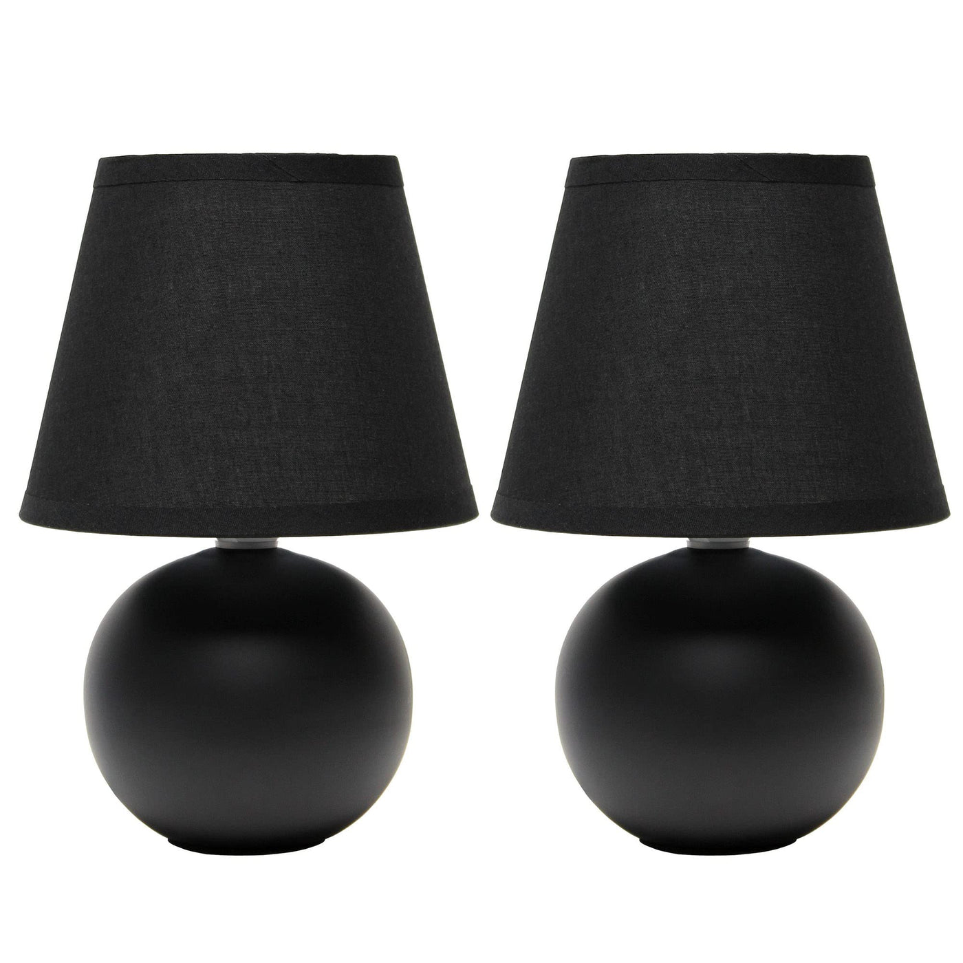 A petite table lamp set, each made primarily of ceramic with its base in the shape of a round orb sits beneath a matching colored tapered fabric shade for an overall effortlessly styled lamp suited for both your decor and lighting needs. A number of color options are available in this style, to compliment your decor just right. Includes 1 x tapered drum shaped fabric shade that secures to the base using a socket nut. Includes 2 x matching ceramic orb shaped lamp bases. Features a 5' white plug in cord with an in-line gear (rotary) switch. Each lamp requires 1 x 40 watt type B10 candelabra based bulb (not included). Each shade measures Dia: 5.5" x H: 4.5". Comes in a variety of colors as well as a single pack option. Does the item contain wood: No. Height from Base to Shade: 3.88". Height from Base to Socket + Socket: 3.7".