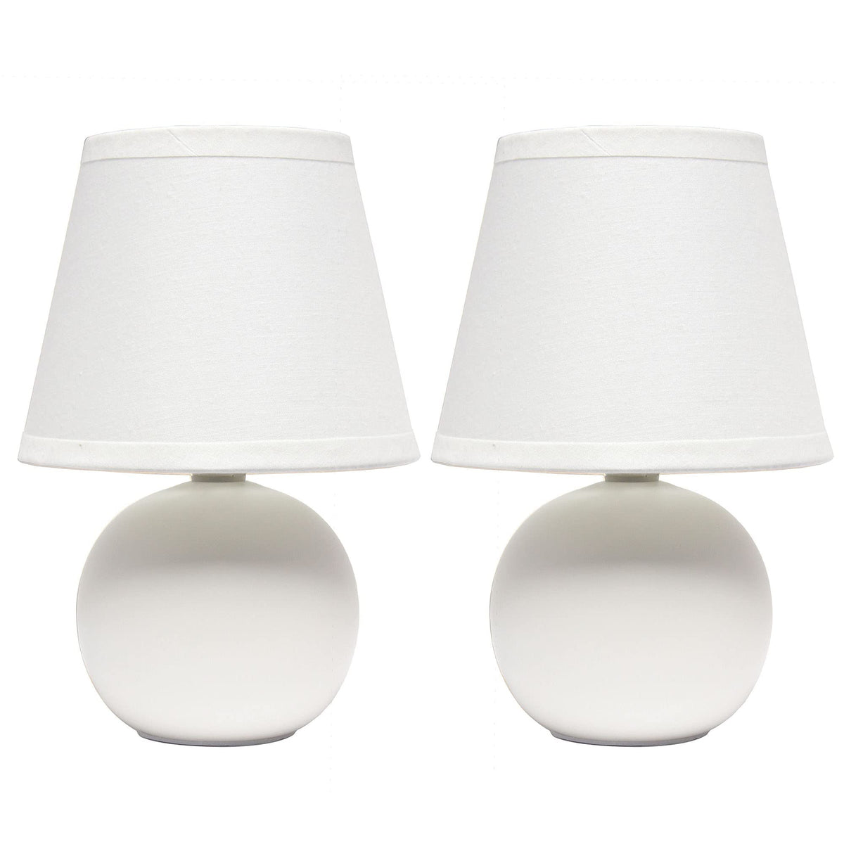 Creekwood Home Off-White Ceramic Drum Shade Bedside Table Lamp Set Of 2, 8.66" Tall