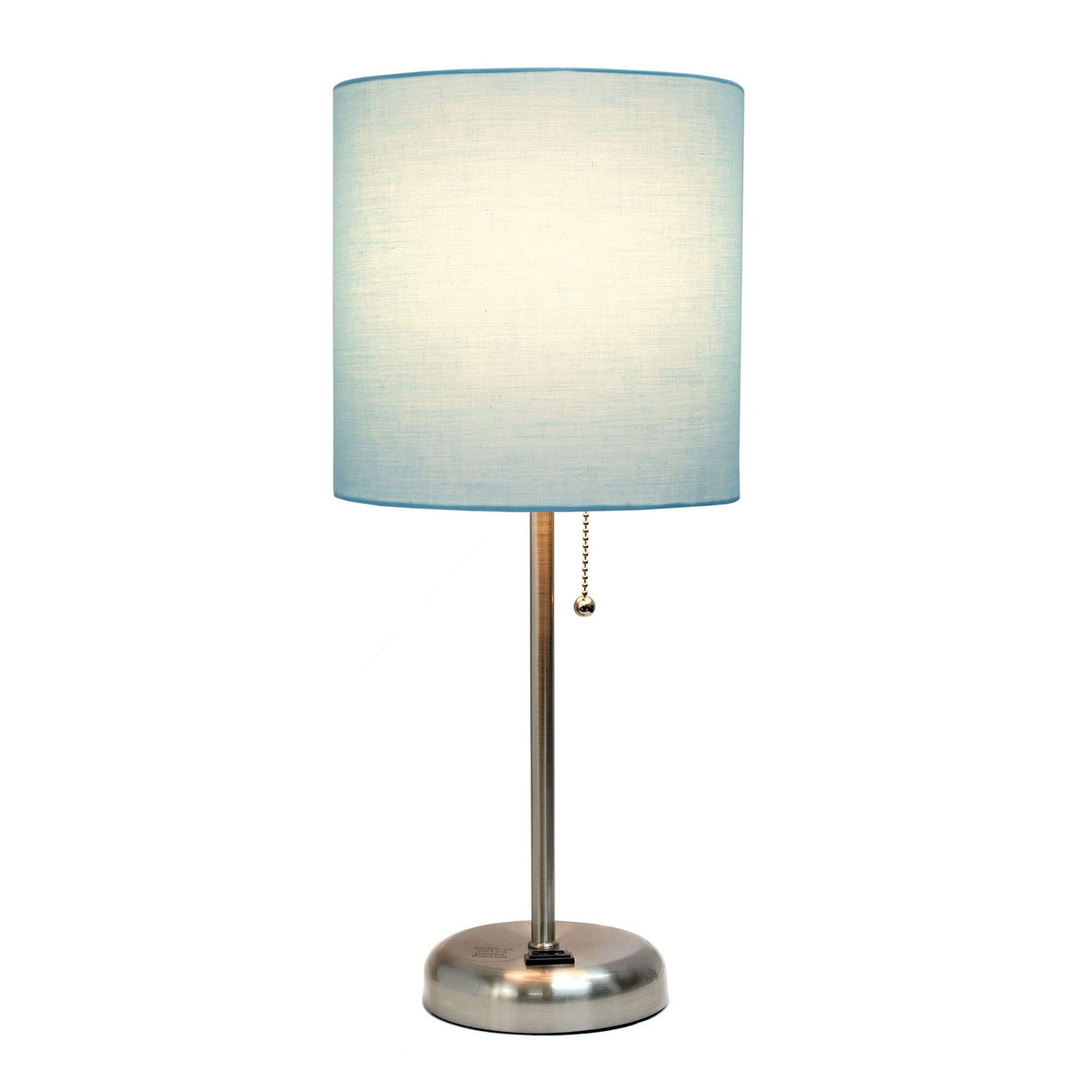 - **Stylish Design**: The lamp features a chic drum-shaped fabric shade available in various colors, adding a touch of elegance to any room. The aqua shade complements the brushed steel finish beautifully.
