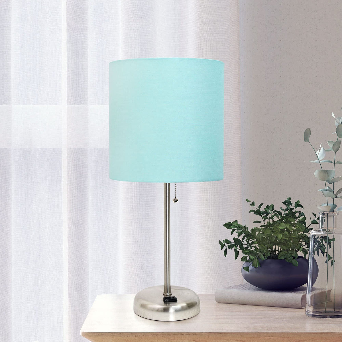 Creekwood Home Oslo 19.5" Metal Table Lamp, Brushed Steel & Aqua Drum Shade