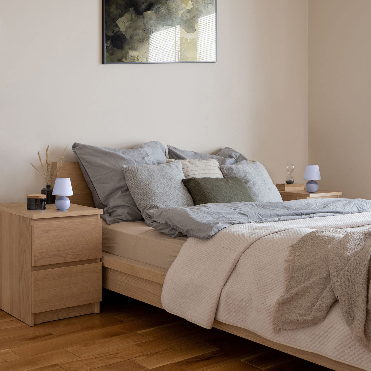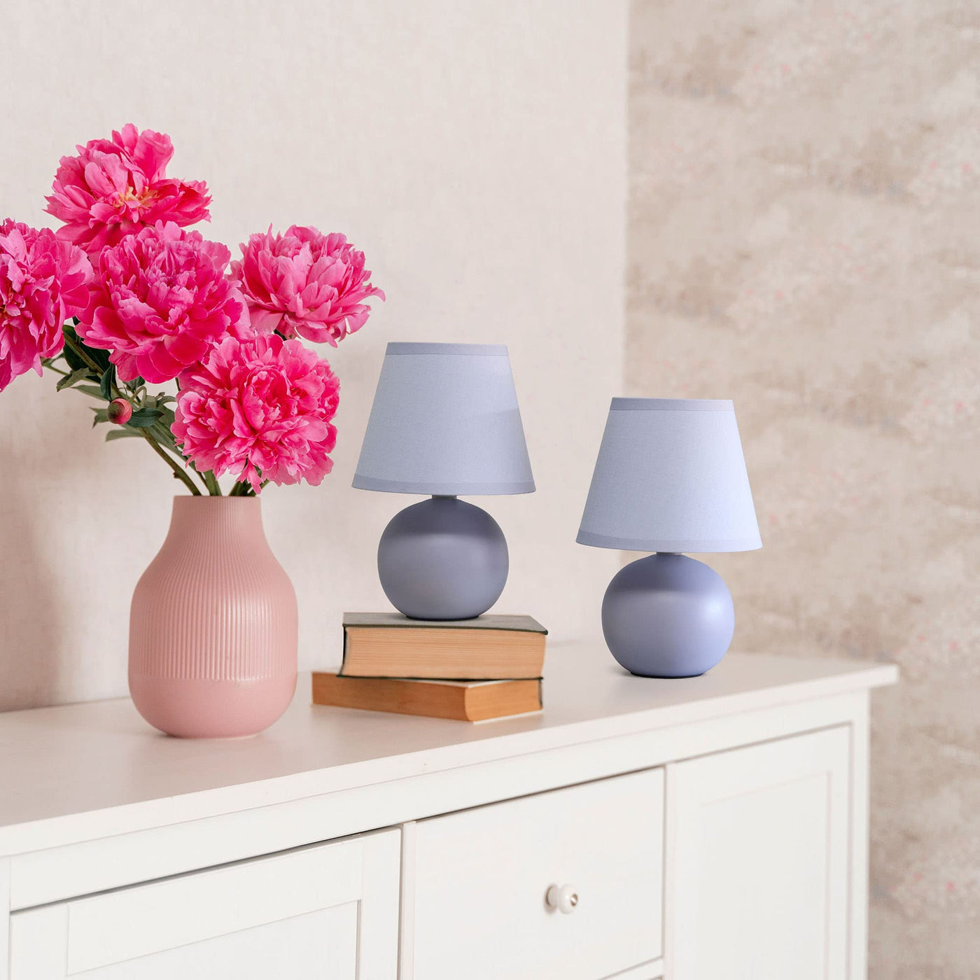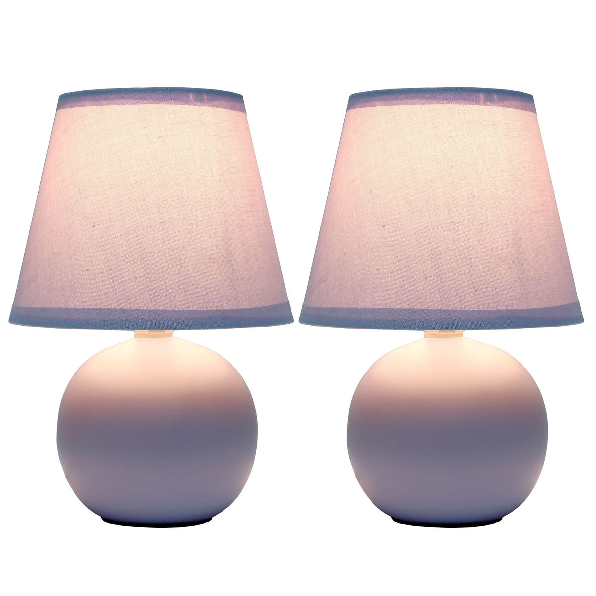 Creekwood Home Purple Ceramic Orb Base Bedside Table Lamp Set With Drum Shade, 8.66"
