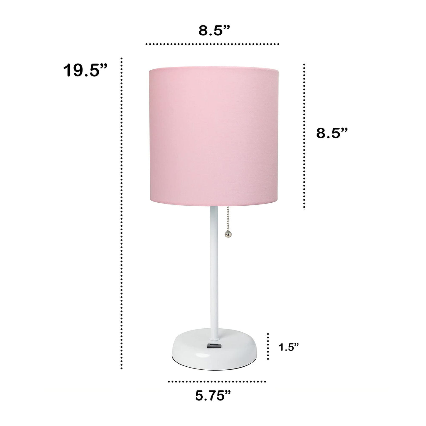 Creekwood Home White Metal Table Lamp With Light Pink Shade & Usb Port, 19.5" Contemporary Design