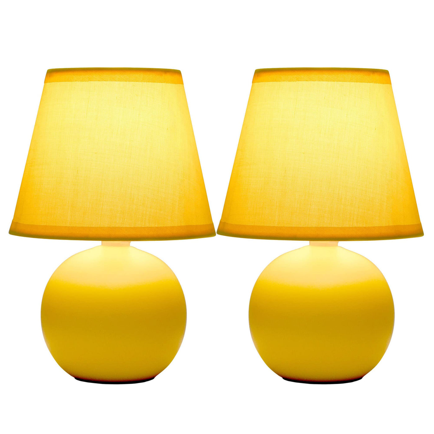 Creekwood Home Yellow Ceramic Orb Base Table Lamp Set - Traditional Tapered Drum Shade, 2-Pack