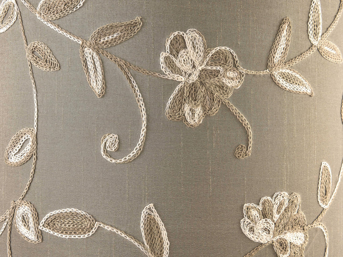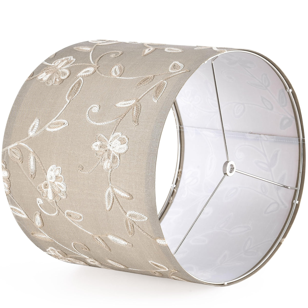 Creme Fabric Drum Lamp Shade With Embroidered Leaf Trim 13'' Top X 13'' Bottom X 10'' High (Spider) Set Of 2 Medium Lamp Shade F