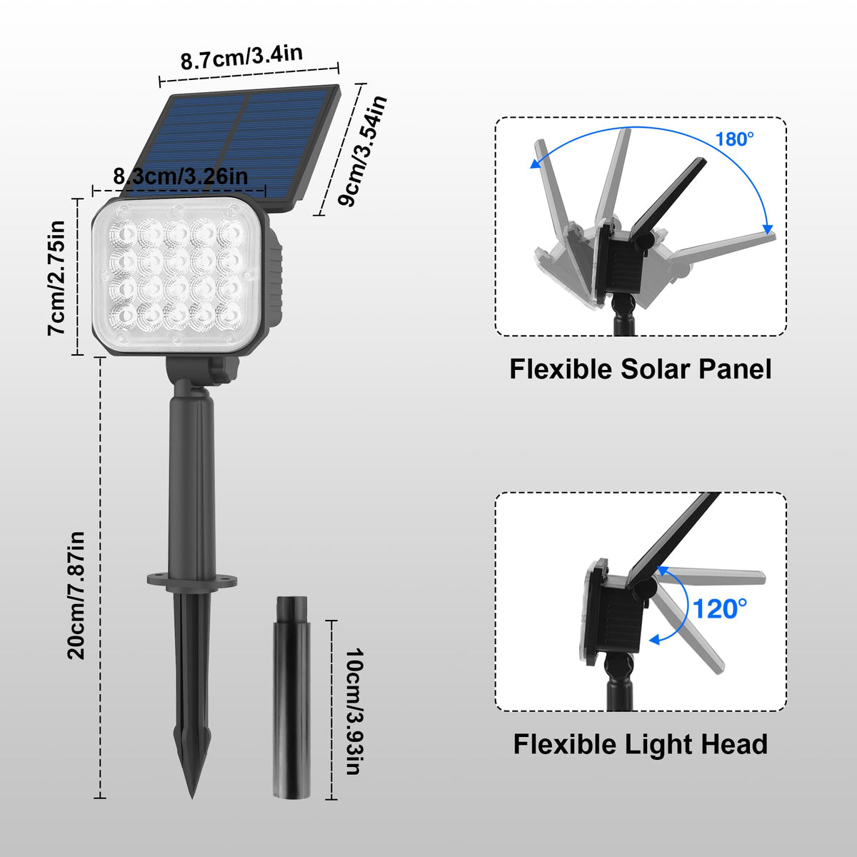 - **Adjustable Design**: The solar panel adjusts fully to 180 degrees, and the light itself tilts 120 degrees, allowing you to direct the light exactly where you need it. This feature ensures optimal sunlight absorption for charging and customized lighting for your landscape.