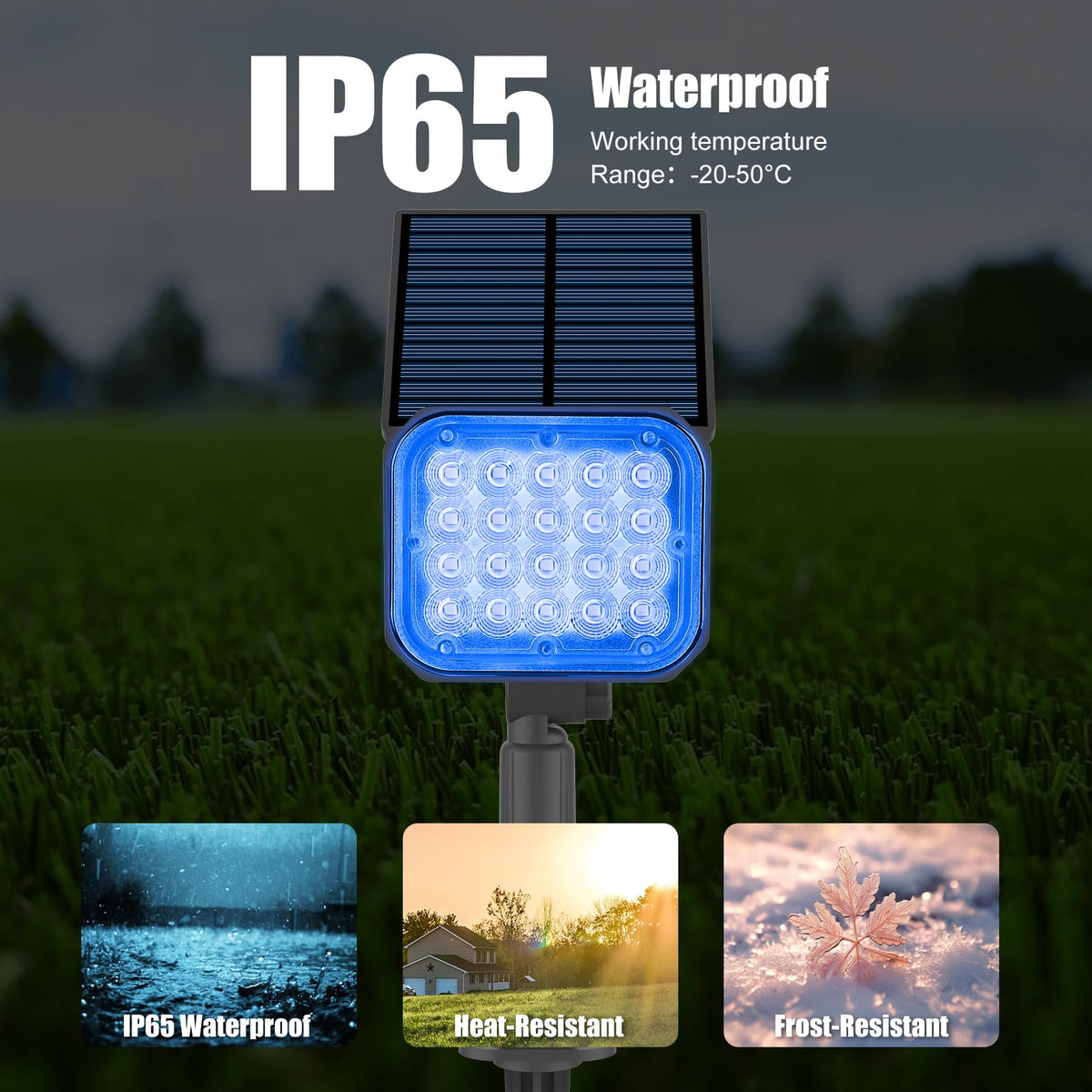 - **Long-lasting Performance**: With a built-in 1500mAh rechargeable battery, these solar spotlights supply consistent lighting for 6-12 hours after a 6-8 hour charge, making them a reliable choice for long nights outdoors.
