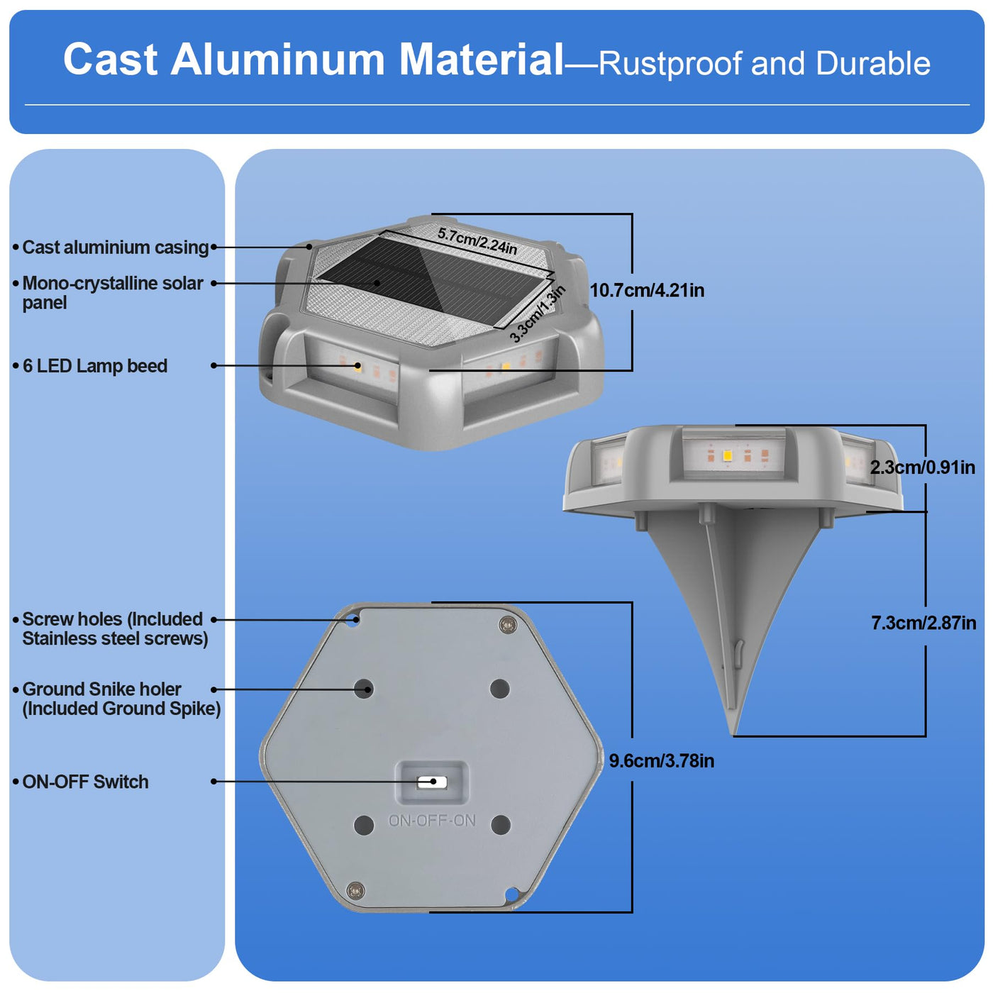 CREPOW Green Solar Dock Lights Driveway Deck Lights - 8 Packs Waterproof Outdoor LED Aluminum Dock Lighting Warning Step Light f