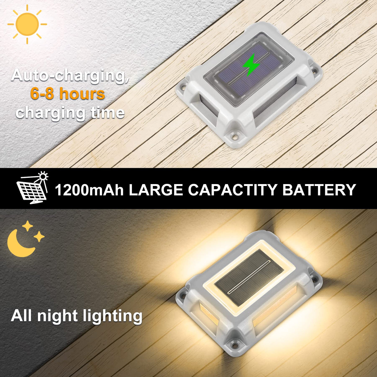 Crepow Solar Deck Lights Driveway Dock Lights- 8 Packs Waterproof 1200Mah Solar Powered Outdoor Led Aluminum Dock Lighting Road