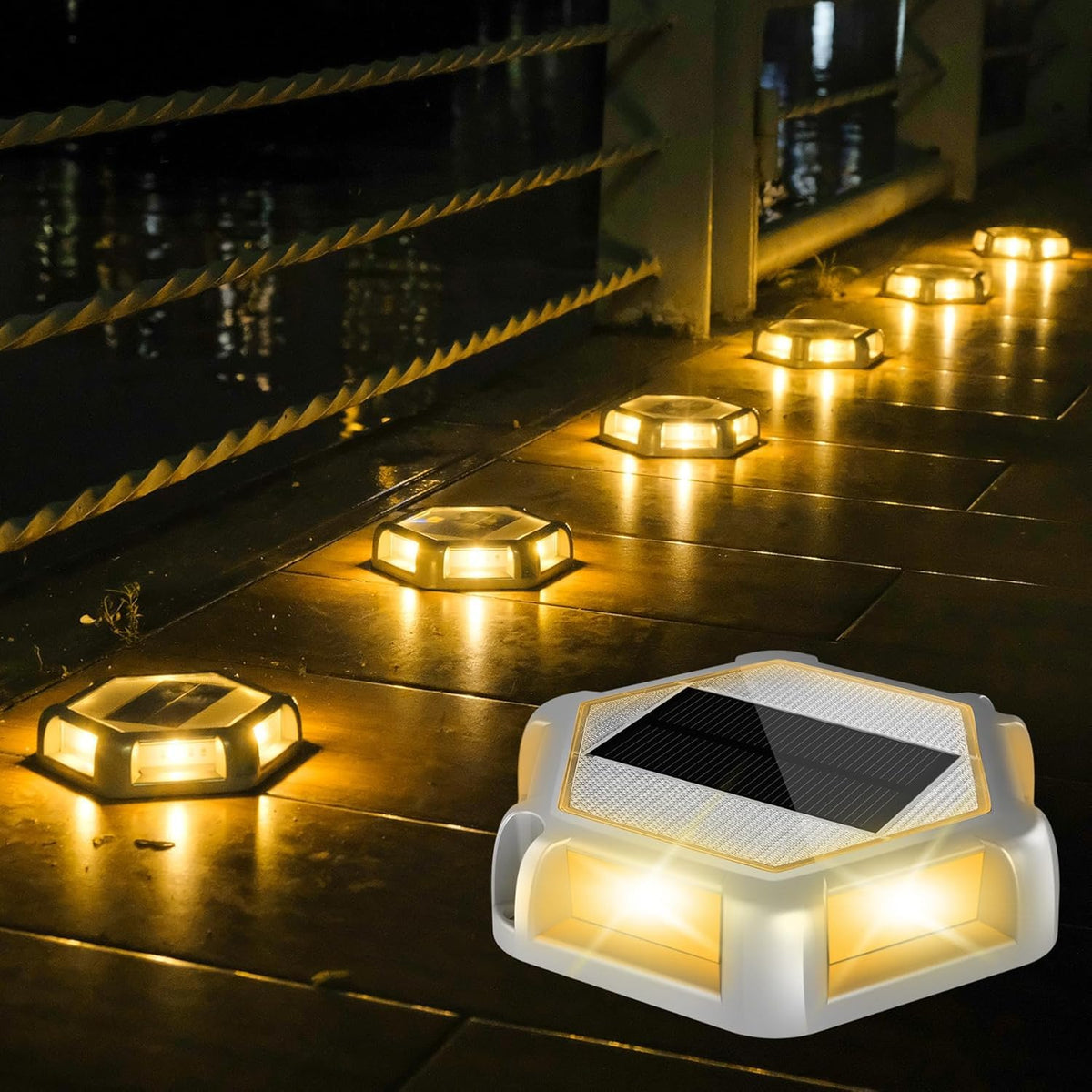 CREPOW Solar Dock Lights Driveway Deck Lights - 12 Packs Waterproof Outdoor LED Aluminum Dock Lighting Warning Step Lights for Driveway Sidewalk Garden Pathway Yard (Warm White)