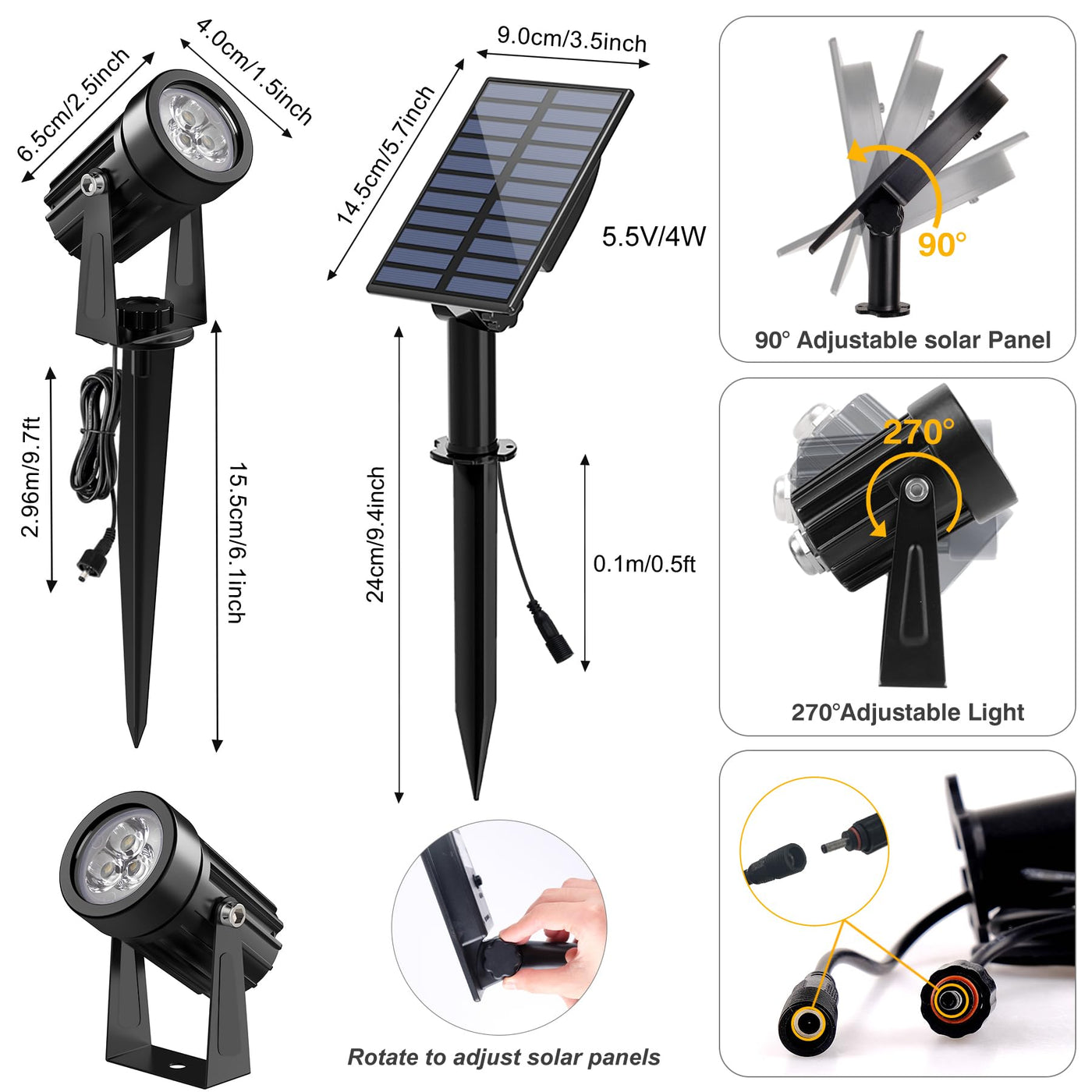 Crepow Solar Spot Lights Outdoor, 2 Pack Solar Landscape Spotlights Ip65 Waterproof 9.8Ft Cable, Auto On/Off Outdoor Wall Lights