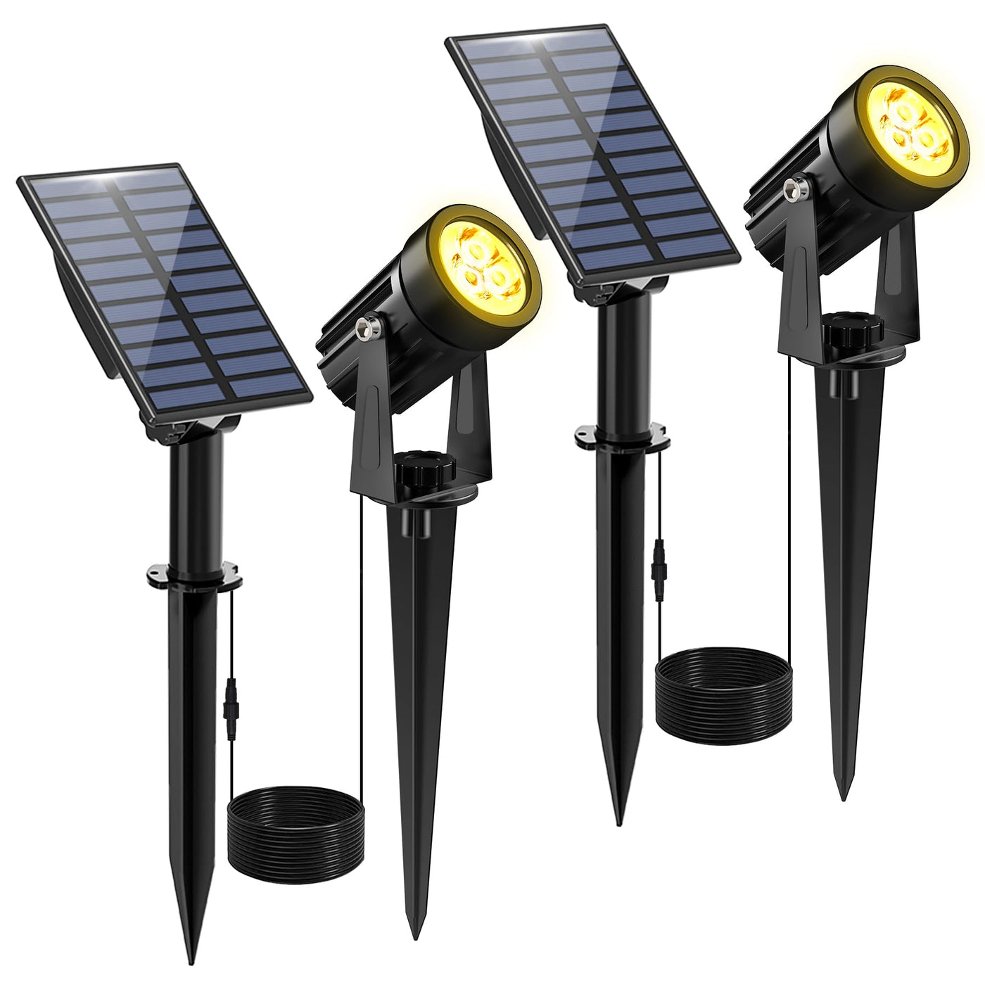 Crepow Solar Spot Lights Outdoor, 2 Pack Solar Landscape Spotlights Ip65 Waterproof 9.8Ft Cable, Auto On/Off Outdoor Wall Lights For Garden Yard Driveway Porch Walkway Pool (3000K Warm White)