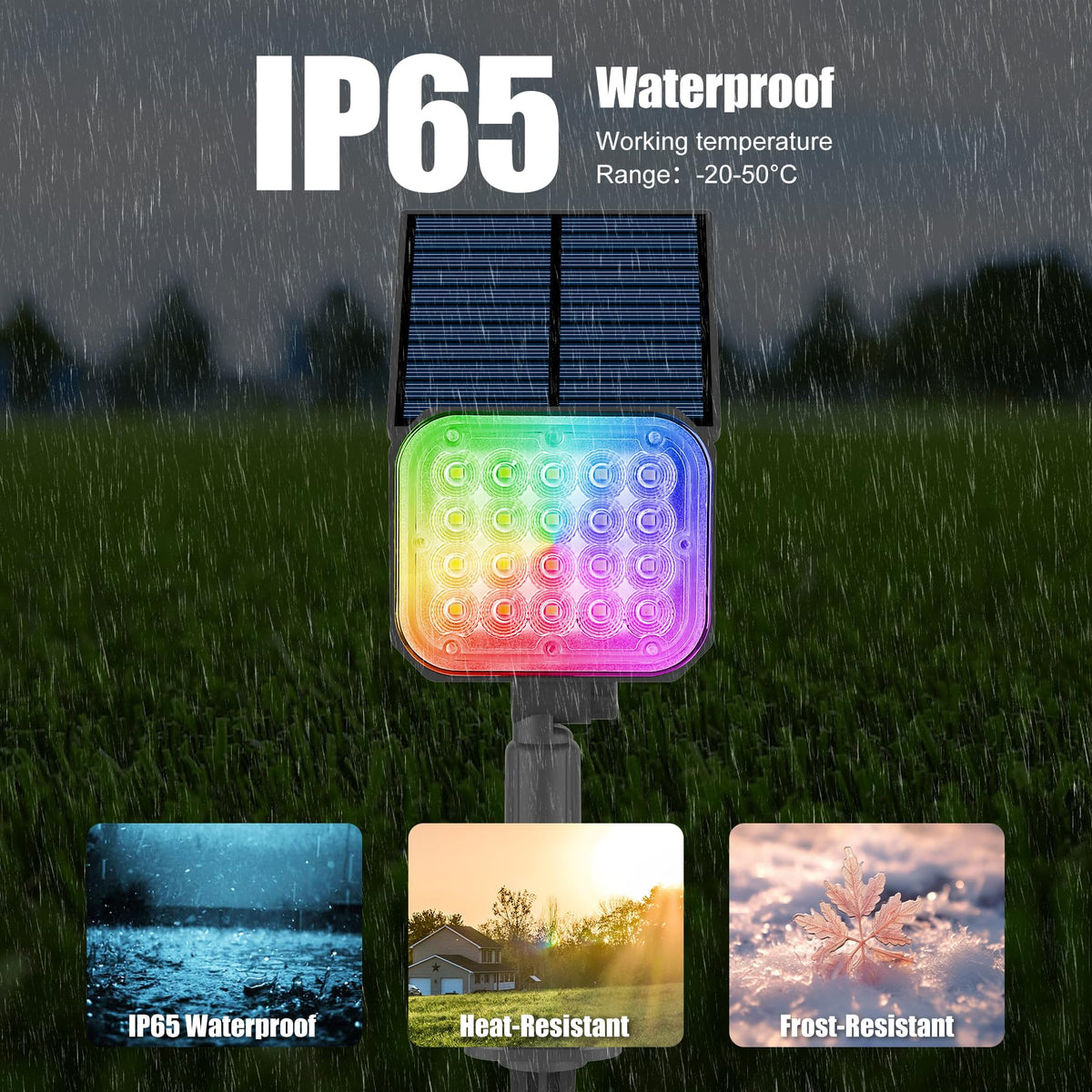 Q: Are these solar spotlights waterproof?A: Yes, the CREPOW Solar Spot Lights have an IP65 waterproof rating, making them designed to withstand dust and water jets, ensuring reliable performance even in rainy weather.
