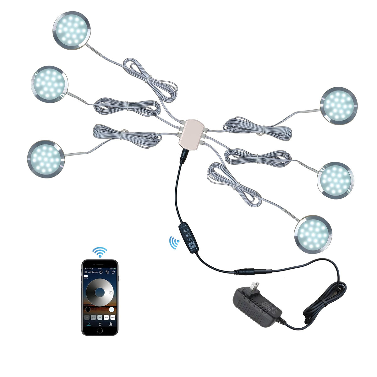 Crisetek Puck Lights 6 Packs Bluetooth App Smart Control Dimmable Tact Switch Under Cabinet Light Cabinet Lighting Cabinet Lights Dc 12V Adaptor (Cool White, App 6Pack)