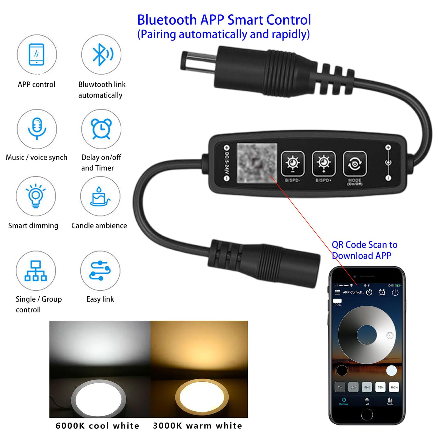 Q: Can I control the CRISETEK Puck Lights using a smartphone?A: Yes, the CRISETEK Puck Lights can be controlled via a Bluetooth APP. You can easily download the ZENGGE app on both iOS and Android devices for convenient smart control.