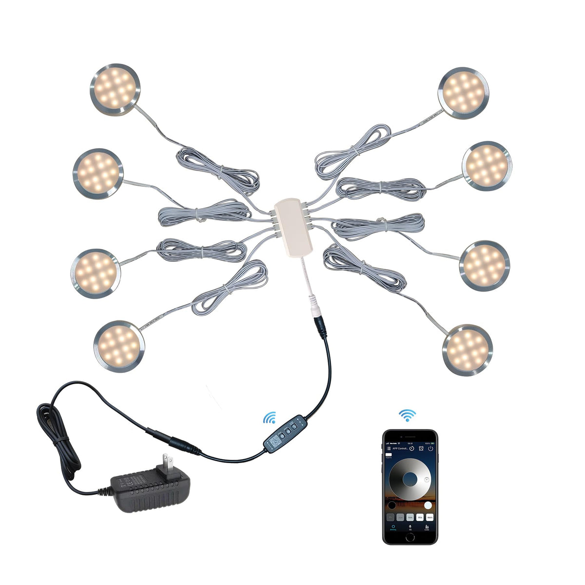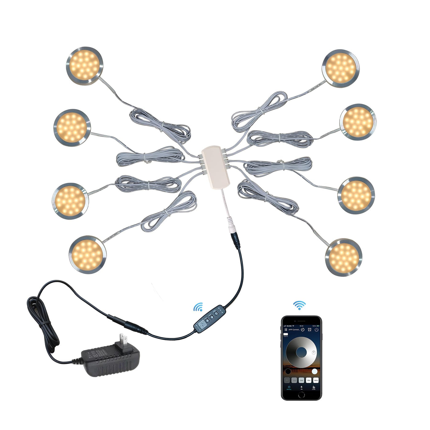 Crisetek Puck Lights 8 Packs Bluetooth App Smart Control Dimmable Tact Switch Under Cabinet Light Cabinet Lighting Cabinet Lights Dc 12V Adaptor (Warm White, App 8Pack)