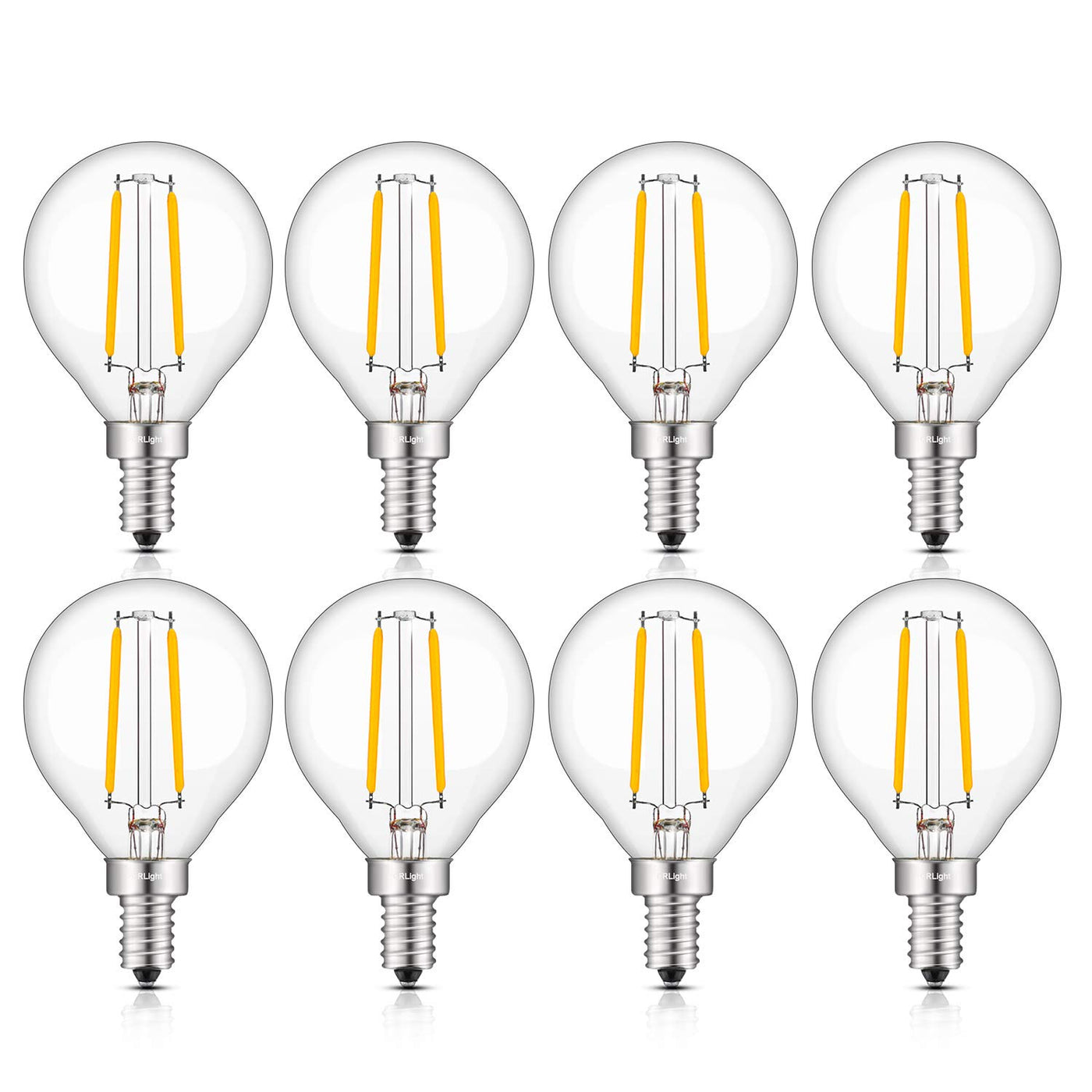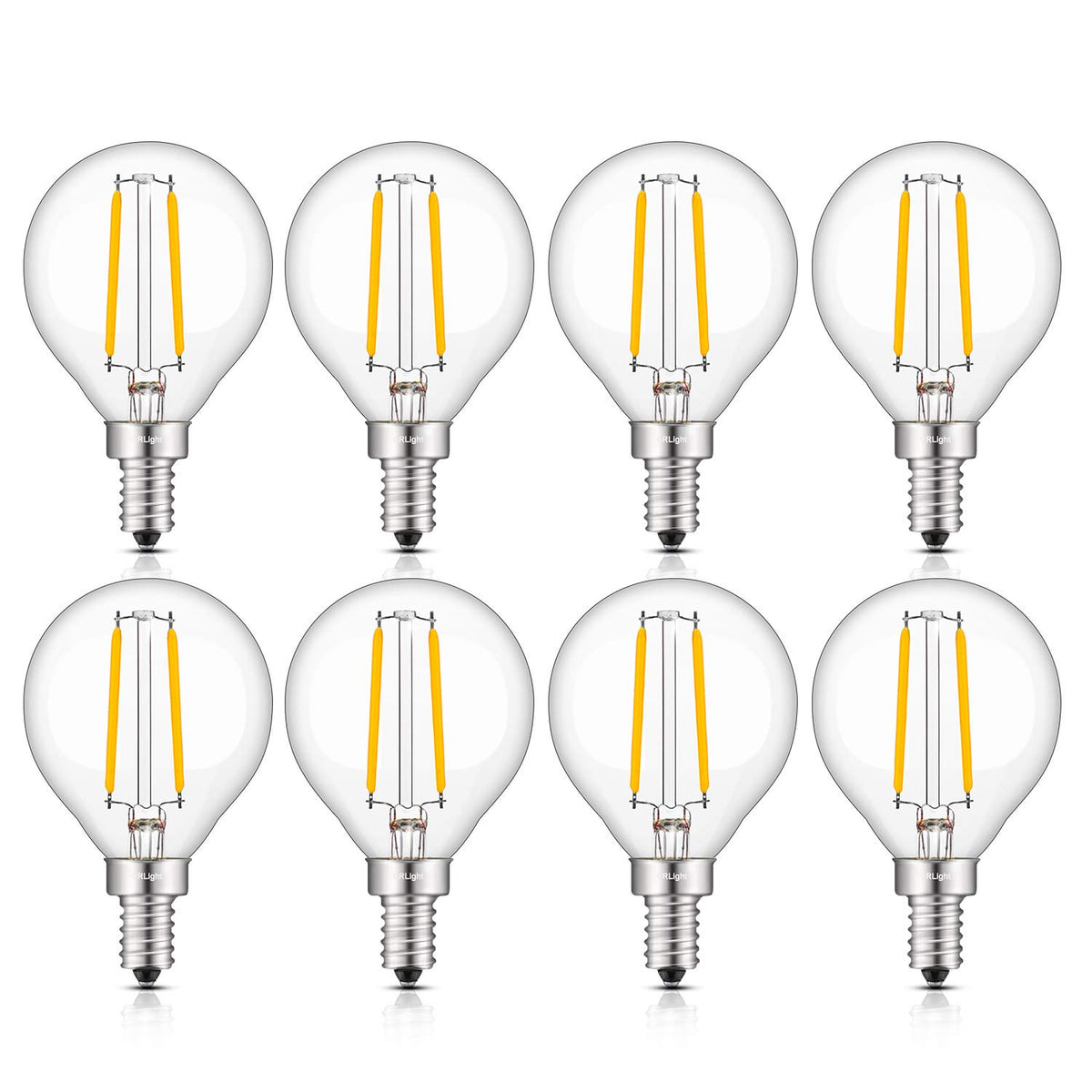Product Type: G16 2W Dimmable LED Filament Bulb E12 Candelabra Base 3000K (8 Pack) Base Type: E12 Shape Type: Globe Working Voltage: AC 110V-130V Color Temperature: 3000K (Soft White) Luminous Intensity: 300LM Beam Angle: 360 Degrees Size: Diameter 1.97 Inch x Height 3.15 Inch Material: Metal and High-Strength Glass Light Source: 2 LED Filament Life Span: Average 30000 Hours Lifespan, 16 Years Life (5 Hours per Day) Mercury-free, No UV, No Flickering, CE and RoHS Authenticate Application: Homes, Hotel Rooms/Lobbies, Restaurants, Libraries, Retail Stores, Residential/Commercial Lighting, etc. Please Note: 1. Most traditional incandescent or CFL bulbs dimmers cannot be used for LED bulbs dimming, and some poor-quality dimmers may cause flicker or not working. To dim these LED bulbs, please upgrade your dimmer switches/lamps to support LED bulbs. 2. In the LED industry, there is no unified technical specification; different bulbs and LED dimmers are usually designed by different technology. So some kinds of LED dimmers are not compatible with CRLight's DIMMABLE LED bulbs, especially smart dimmers and switches.