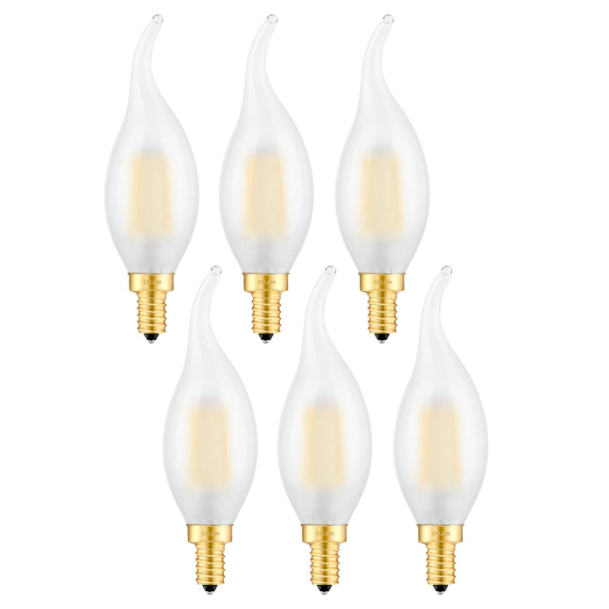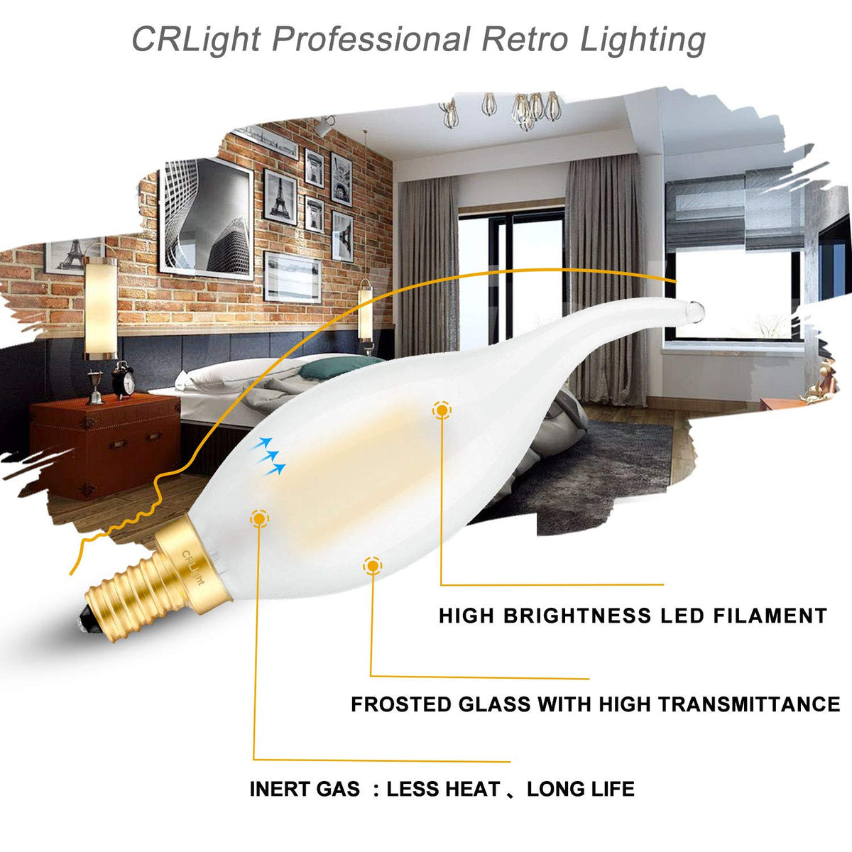Crlight 2W Led Candelabra Bulb 3000K Soft White 25W Equivalent 250 Lm, E12 Dimmable Led Chandelier Bulbs, Antique C35 Frosted Candle Flame Shape Bent Tip, 6 Pack