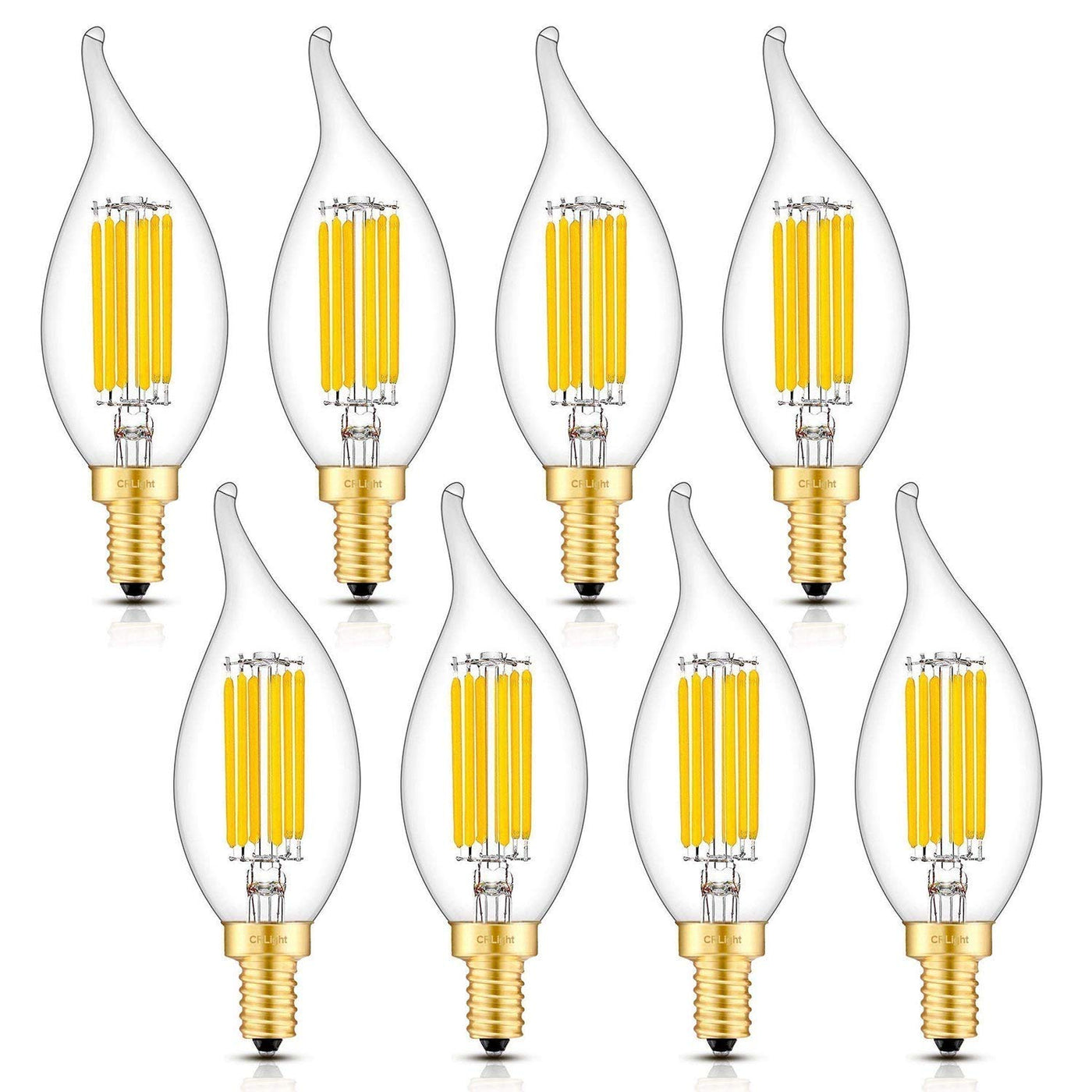 Illuminate your space with the CA11 6W Dimmable LED Filament Candle, featuring an elegant E12 candelabra base. This 8-pack of soft white bulbs boasts a stunning flame shape bent tip design, perfect for chandeliers, sconces, and decorative fixtures. Experience energy efficiency and longevity with these premium LED bulbs, ideal for creating a warm and inviting atmosphere in any setting.
