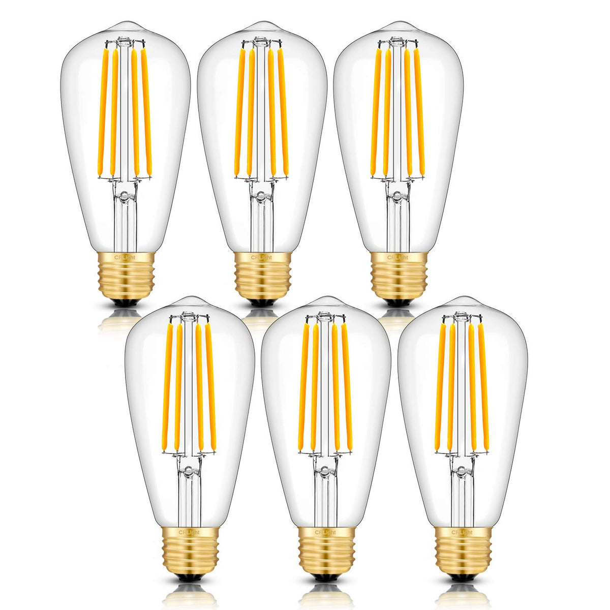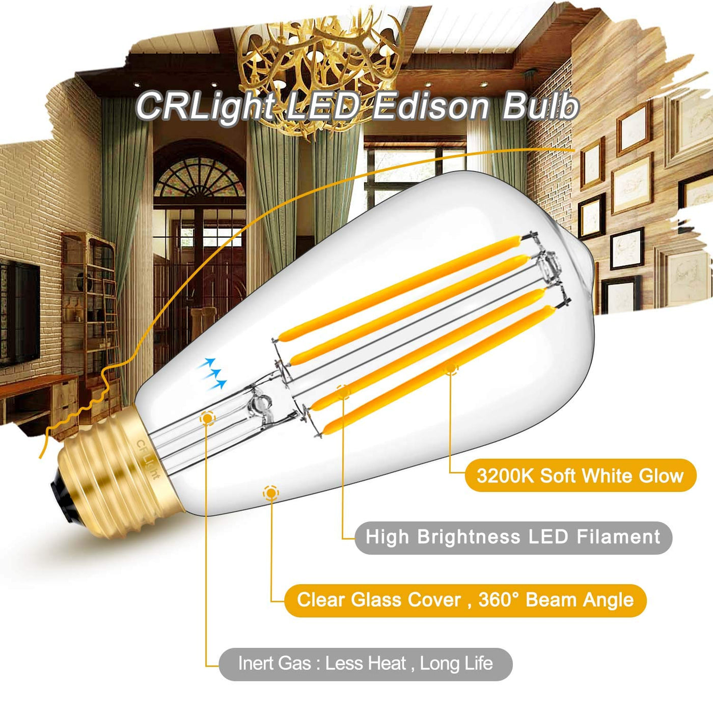 Crlight 8W Dimmable Led Edison Bulb, 80W Equivalent, Soft White 3200K, 6 Pack