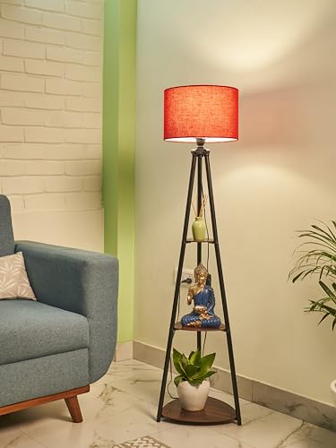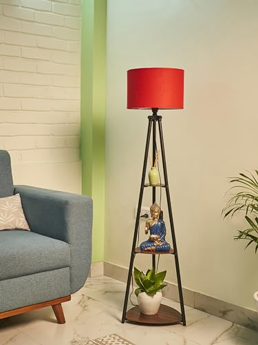 Crosscut Furniture Metal Floor Lamp with 3 shelves (Lily Red)