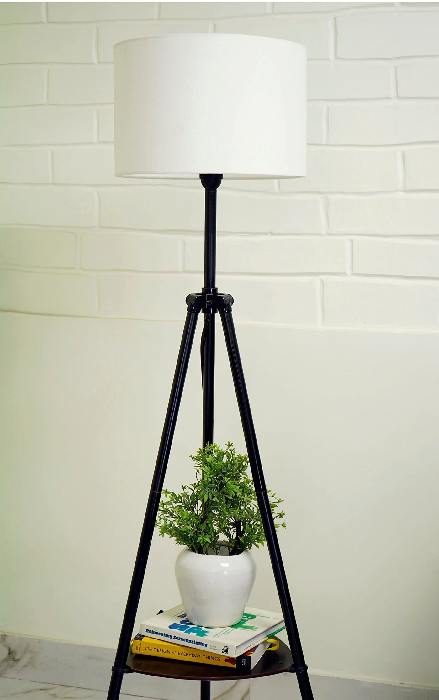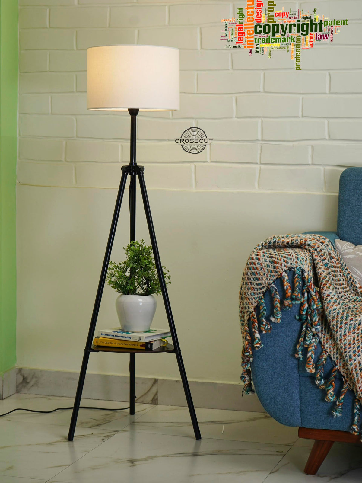 Crosscut Furniture Metal Floor Lamp with decorative shelf (Cotton White)
