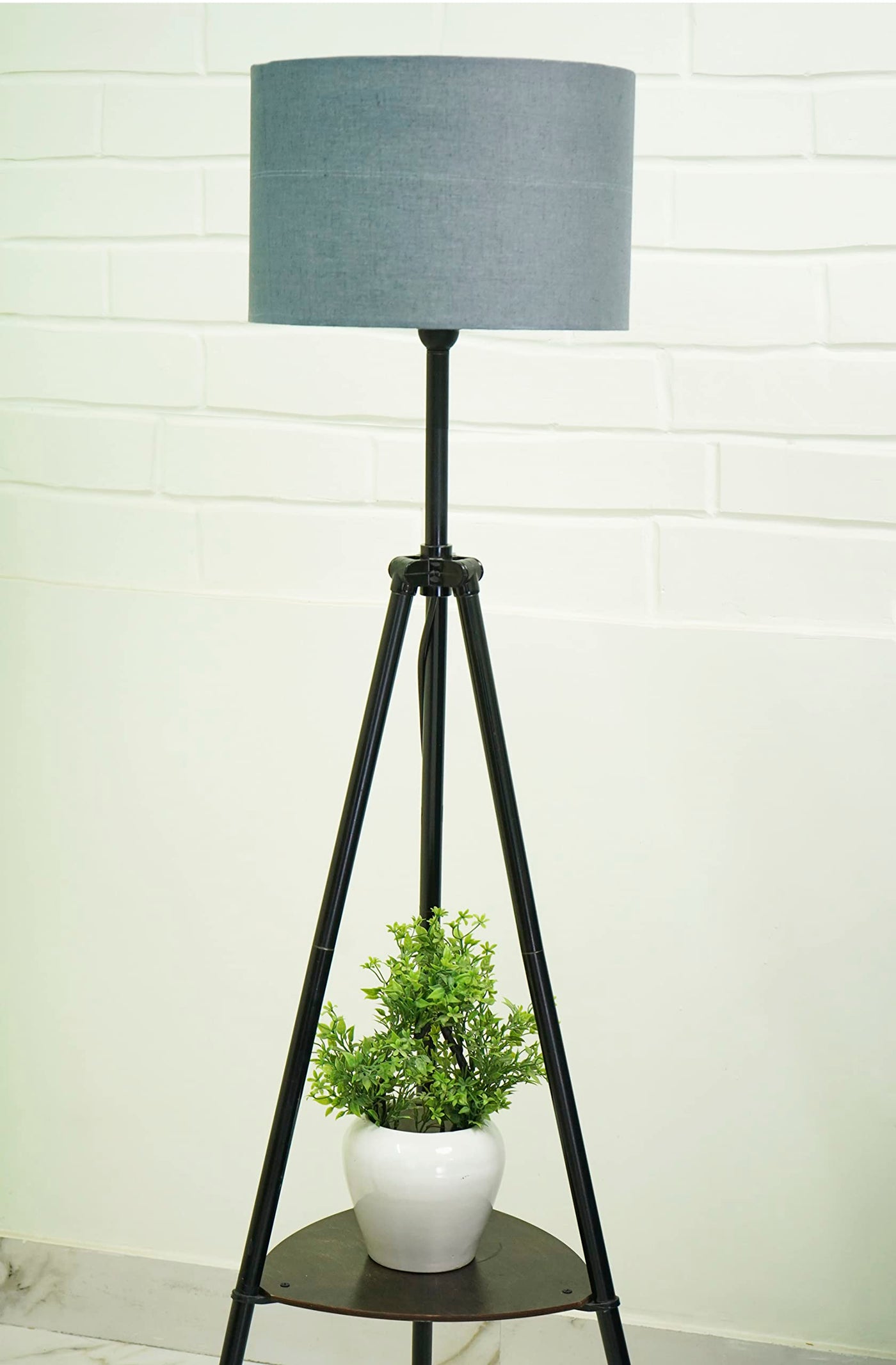 Crosscut Furniture Metal Floor Lamp with decorative shelf (Gothic Grey)