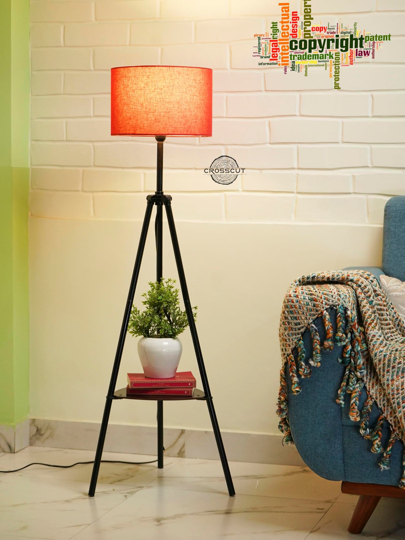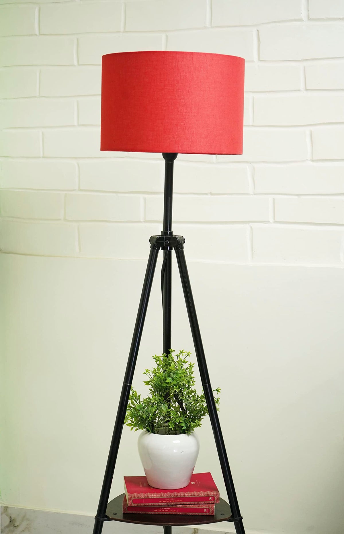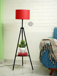 Crosscut Furniture Metal Floor Lamp with decorative shelf (Lily Red)