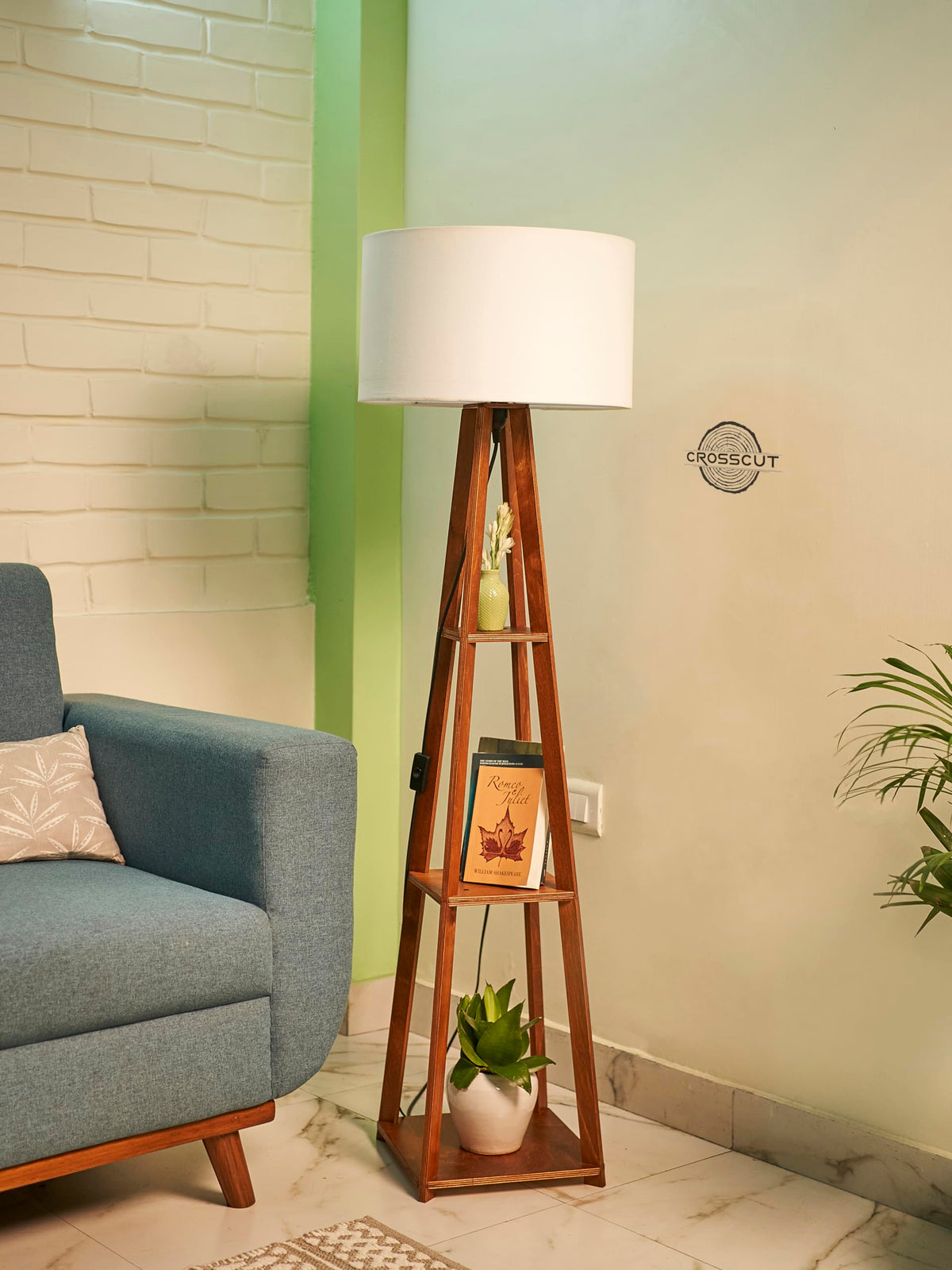 Crosscut Furniture Wooden Floor Lamp with shelf (Cotton White). LED bulb included