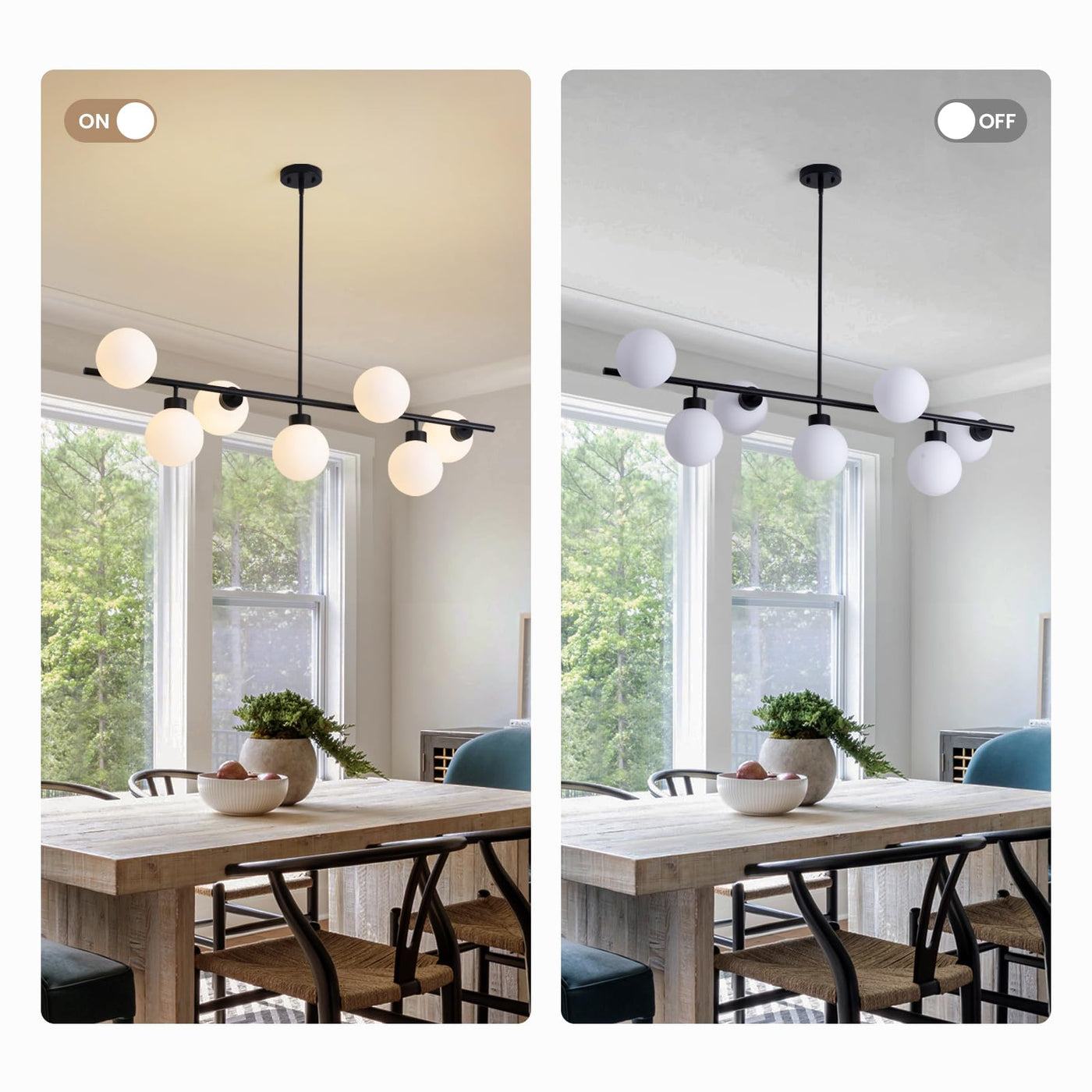Modern Linear Design: Crafted from high-quality metal and globe glass, this mid-century modern chandelier features a sleek linear silhouette and a sophisticated black finish, making it an ideal centerpiece for contemporary spaces.